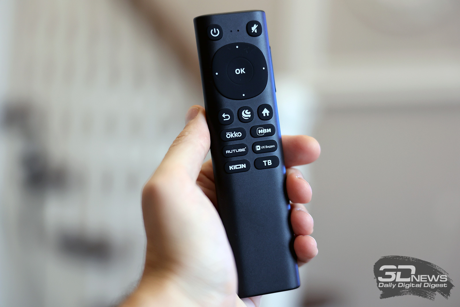 Он стал крупнее и тяжелее чем раньше и получил несколько дополнительных клавиш быстрого доступа к определенным приложениям («Кинопоиска» в их числе нет, хотя есть Kion – любопытно с учетом того, что Okko, принадлежащий «Сберу», конкурирует с обоими онлайн-кинотеатрами). Управляться с новым пультом стало, в любом случае, приятнее, это более монолитная вещь. Также в нем есть динамик, благодаря которому на пульт можно «позвонить» при помощи упомянутой выше кнопки, если вы его вдруг потеряли.