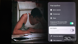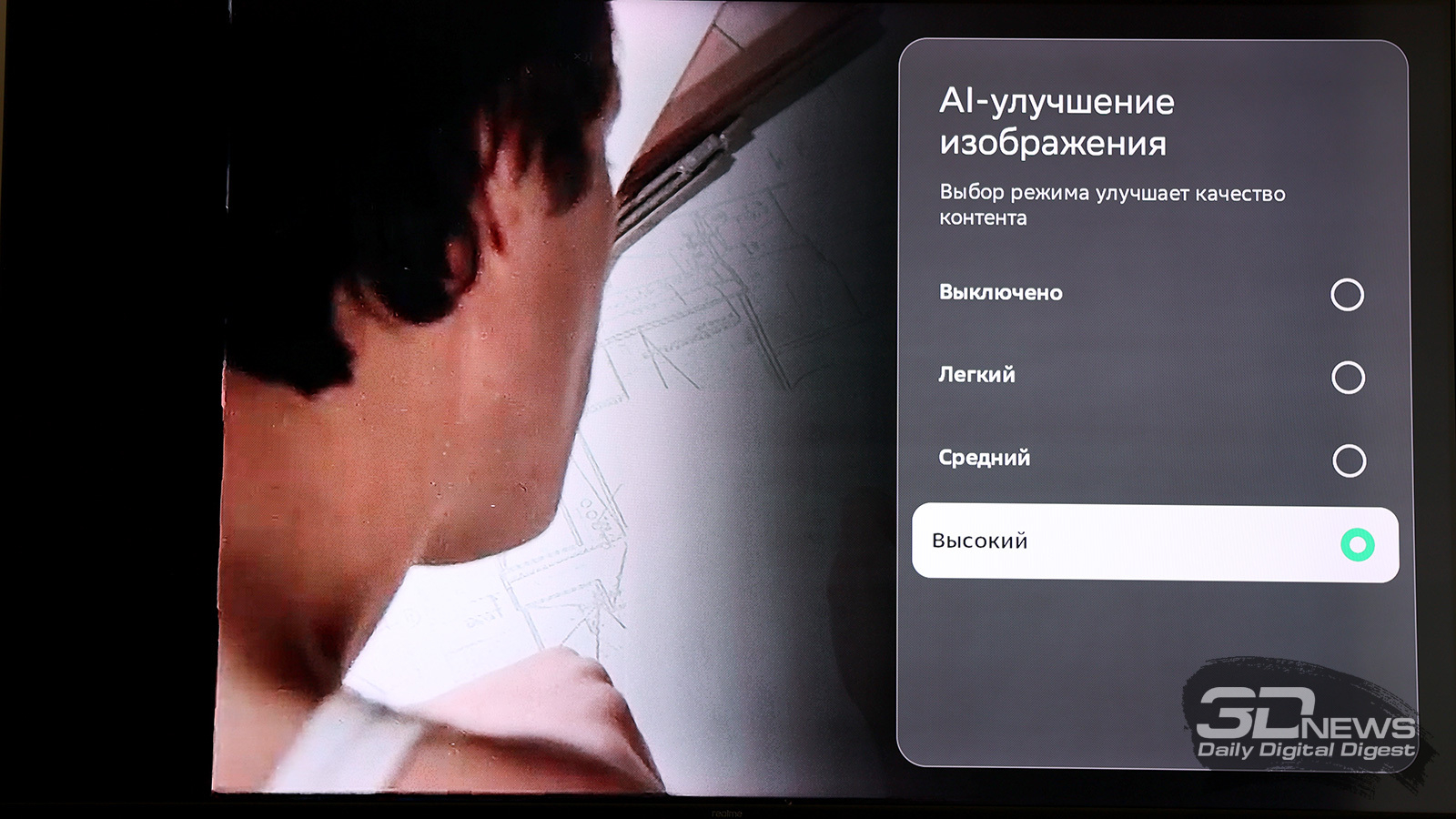 Ну и в SberBox Max есть возможность активировать функцию улучшения качества видео: приставка в режиме реального времени повышает резкость изображения с низким разрешением, уменьшает количество шумов. Я попробовал на практике – да, работает, но достаточно своеобразно: из рыхлой, шумной и недостаточно детализированной картинки неотреставрированного советского фильма не делается «конфетка». В основном изображение просто становится более резким, что порой выглядит неуместно и только портит изображение. Благо настройку эту можно регулировать по степени воздействия, подбирая оптимальный эффект (или отключая его вовсе).