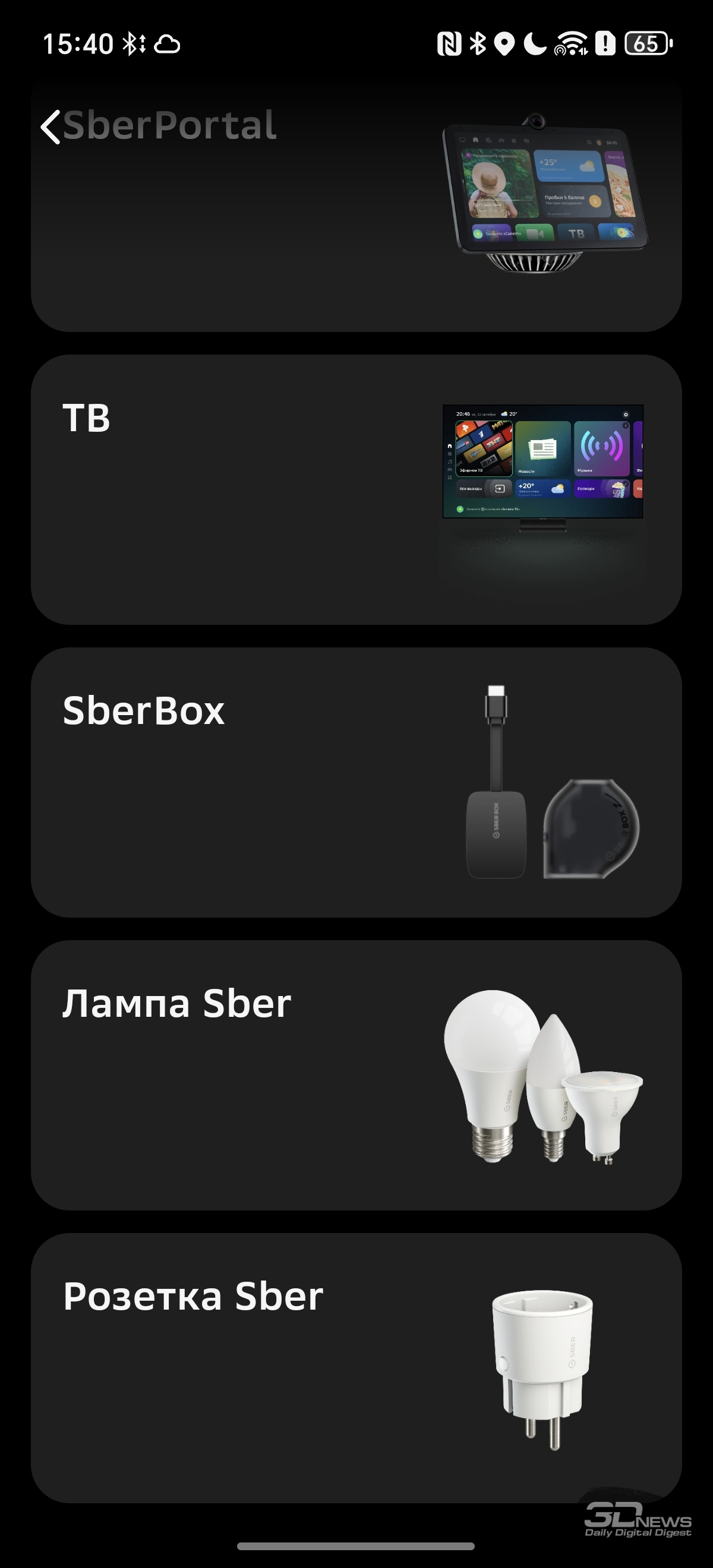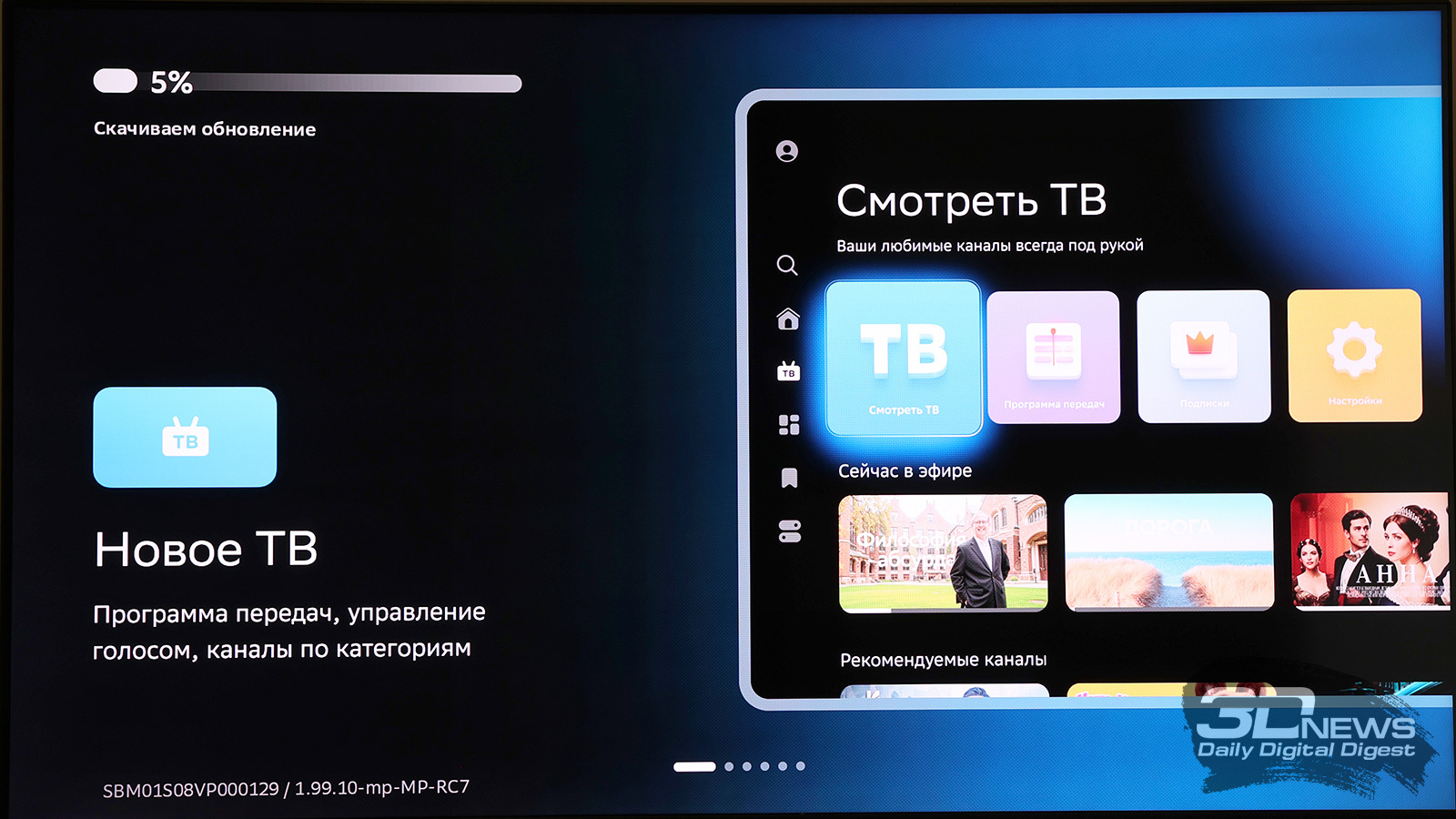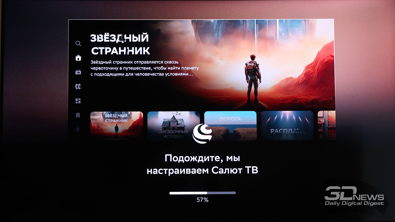 По умолчанию SberBox Max предлагает доступ к основным российским онлайн-кинотеатрам (Okko, Kion, Wink, Premier – «Кинопоиск» тоже есть, но он спрятан с главного экрана), Rutube и VK Видео. Цифровое телевидение тоже есть, причем при первой настройке приставка уточняет, через какой сервис вы будете им пользоваться – есть выбор. А вот мессенджер, который превосходно ловит даже на парковке, как можно было подумать из названия, не предустановлен.