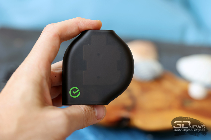 Ну и да, на задней части SberBox Max мы видим тот самый, уже упомянутый выше, кружок с липучкой, при помощи которого устройство вешается на заднюю часть телевизора, словно рыба-прилипала на китовую акулу.