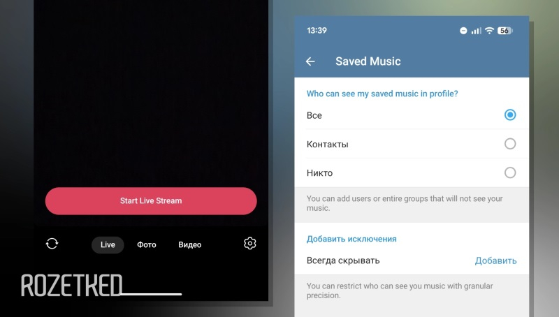 Ещё одним нововведением стало появление кнопки Live в меню создания историй. С её помощью можно быстро запустить прямую трансляцию. Ранее аналогичная опция появилась в бета-версии Telegram для iOS. Когда все упомянутые нововведения появятся в стабильных версиях мессенджера, не уточняется.