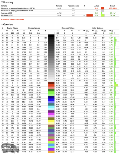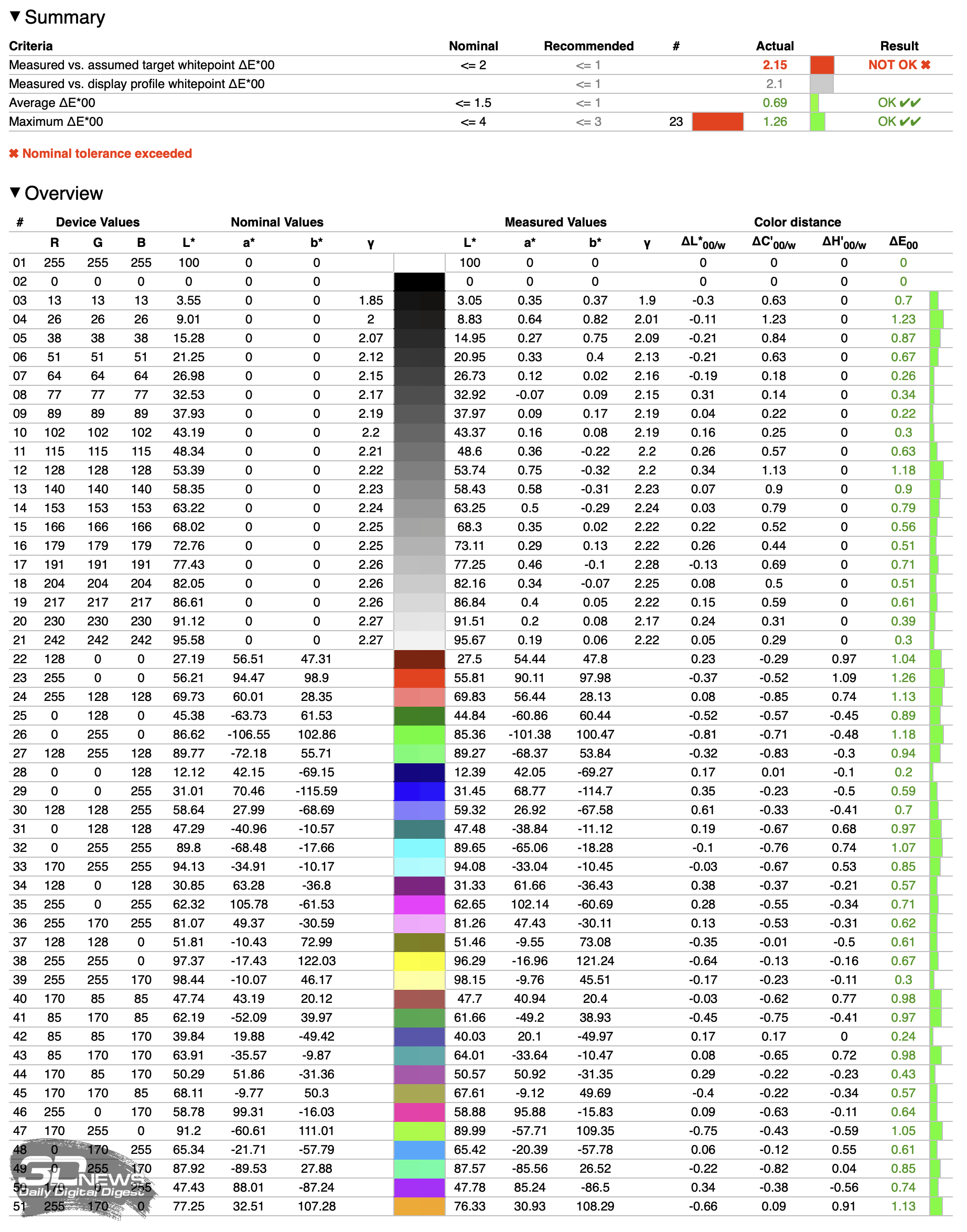 Цветовая температура точно настроена на 6500 K и лишь незначительно отклоняется от эталона в зоне темных оттенков.