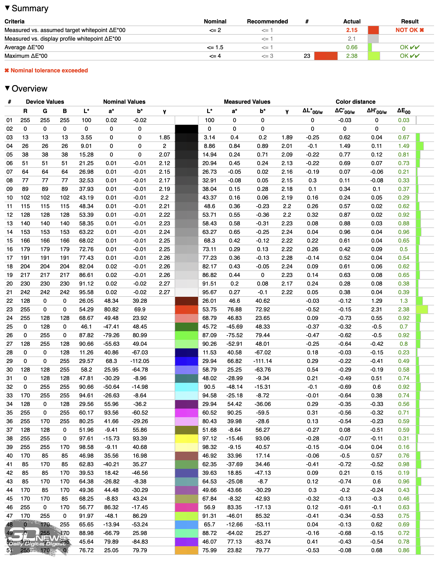 Для тестирования экрана используется колориметр X-Rite i1Display Pro Plus и приложение DisplayCAL 3.