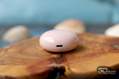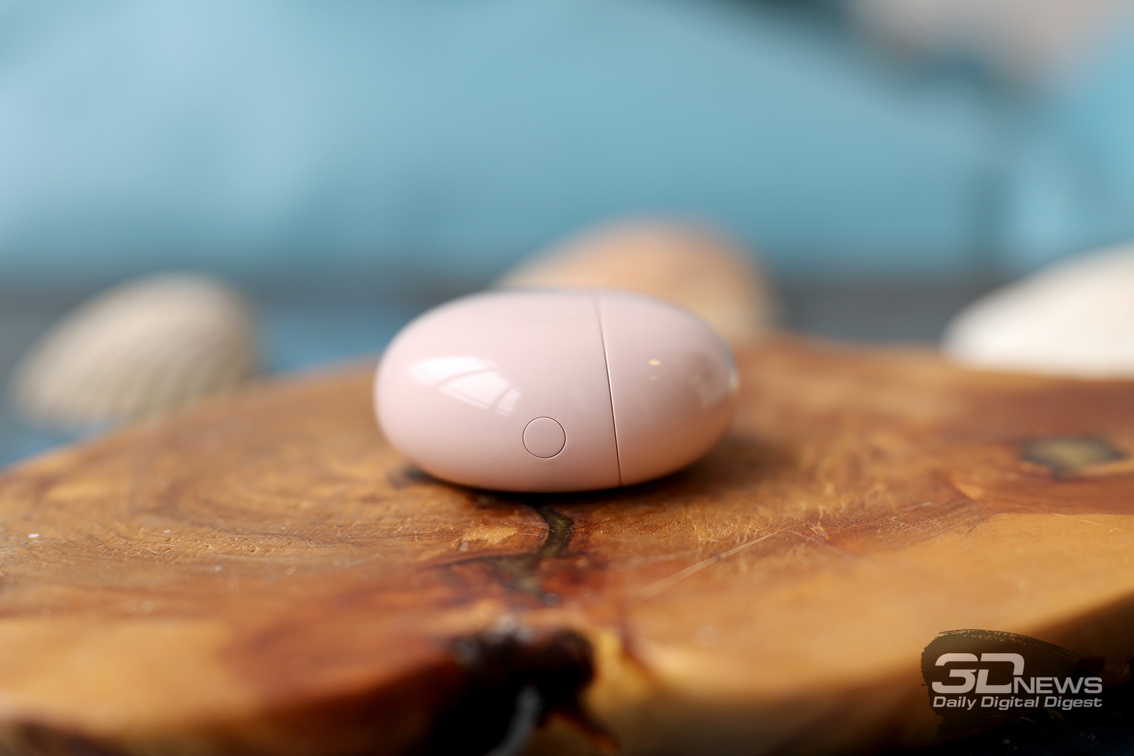 Материалы вполне ожидаемые – глянцевый пластик трех расцветок: розовой (как в нашем случае), белой и черной. Сами наушники сделаны из того же пластика, они больше не зеркальные, как в случае с FreeBuds 6i, материал не такой маркий и не так царапается, они дольше сохраняют свой товарный вид.