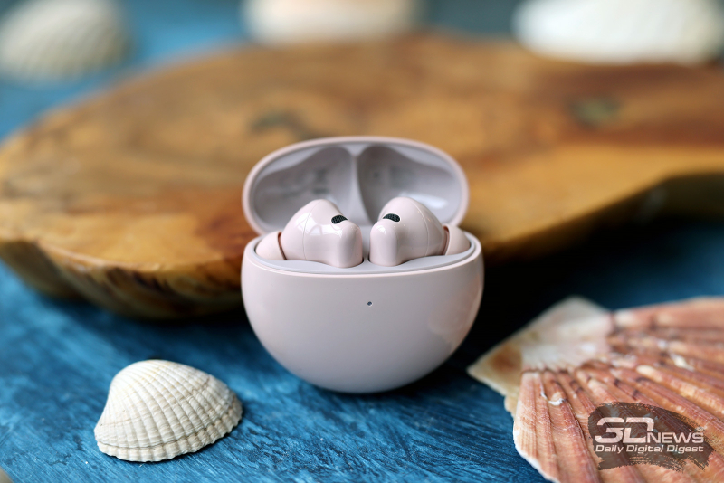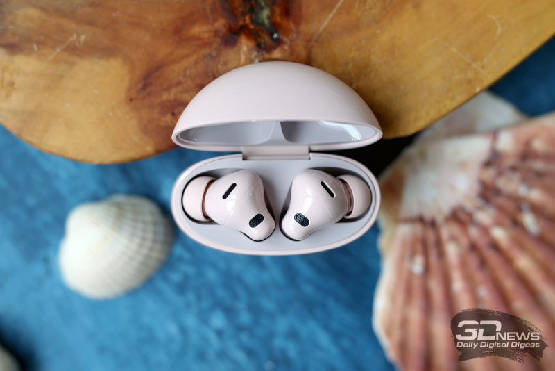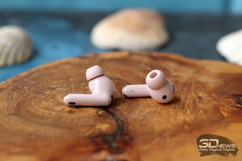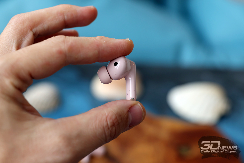 Наушники тут вставные, закрытой конструкции, с силиконовыми амбушюрами (в комплекте есть сменные, трех размеров – до изобилия, с которым мы сталкивались в HUAWEI FreeBuds Pro 4, тут не добрались). Сидят наушники хорошо, оптимальная форма для TWS-моделей уже давно подобрана, я не встречал реально неудобных вставных наушников очень давно.
