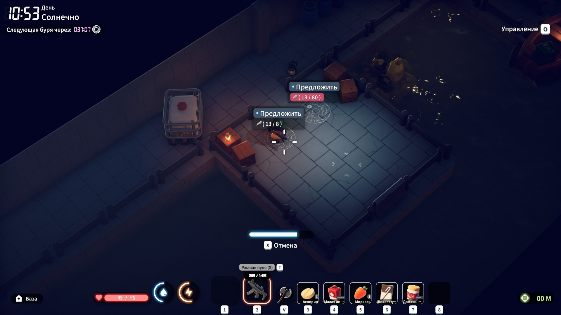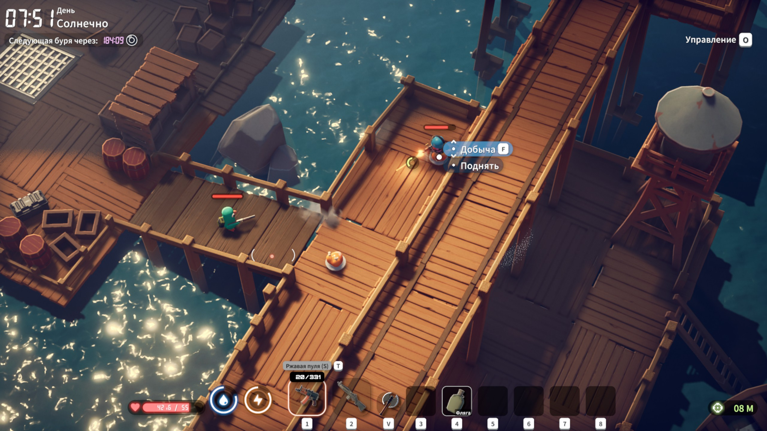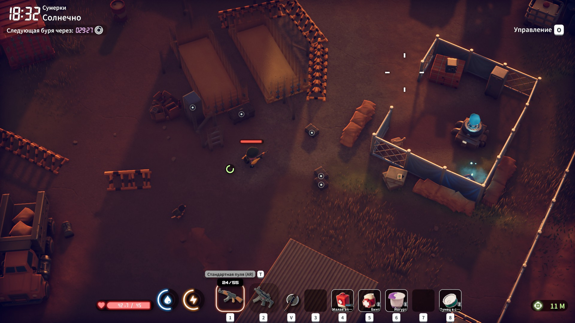 Не все утки стремятся нас изрешетить — некоторые идут на диалог, дают задания и даже будут готовы переехать на нашу базу, если построить для них соответствующее сооружение ⇡#Больно, но веселоСловом, Escape From Duckov следует классическим путём жанра выживания с лёгкими вкраплениями элементов эвакуационного шутера. Вам постоянно придётся решать десяток дилемм: выбросить ли ценный тяжёлый ресурс, или рискнуть и попытаться выбраться из «горячей» зоны с перегруженным хребтом; испытать ли удачу и влезть в бой с серьёзным противником, или же вернуться позже с лучшей экипировкой; возвращаться ли в опасную местность за вещами, которые вы обронили после гибели, или не дёргать тигра за усы лишний раз. В отличие от многих других представителей жанра, гибель и перманентная потеря добычи, как и многие другие характерные раздражающие элементы, в «Дакове» совсем не выводят из себя. Тут и непринуждённая комедийная атмосфера играет свою роль, и игровые механики всё же не столь свирепы, как во многих других «выживачах». Да и потерянное имущество всегда можно довольно быстро нажить заново. А приноровившись, вы в принципе будете гибнуть очень редко. А когда раздобудете экипировку и оружие высокого класса, сможете без особых сложностей справляться даже с самыми лютыми врагами. Но вам всё равно нужно будет полностью зачищать зону, ведь вы не хотите получить шальную пулю в спину от какого-нибудь случайного стрелка. И это, вероятно, одна из главных проблем Дакова: при всём кураже игрового процесса, в какой-то момент тщательная зачистка локаций начинает приедаться, а добыча бесконечного количества ресурсов — утомлять. К счастью, Escape From Duckov не настолько огромная, как какая-нибудь Dune: Awakening, Rust или Valheim. А вот что игре вполне стоило позаимствовать у коллег, так это кооперативные и PvP-возможности. Этим же она вполне могла бы усилить интерес к поздним этапам. Ведь всё — от названия до игровых особенностей — говорит о том, как этому проекту была бы к лицу сетевая игра. Совместные вылазки, утиная королевская битва, арена, эвакуация с локации, где есть другие игроки, в конце концов, — всё это сильно бы взбодрило буксующий «эндгейм». Впрочем, игра наделала достаточно шума, чтобы подобные режимы имели шансы появиться в будущем. *** Escape From Duckov — весёлая и увлекательная игра, которая внесла ироничную струю в традиционно суровый поток релизов в жанрах выживания и эвакуационных шутеров. И пусть потенциал затеи раскрыт не до конца, работа Team Soda всё равно стоит вашего времени. Достоинства: