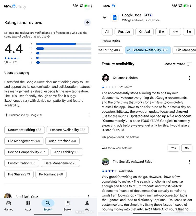 Компания Google начала поэтапный запуск функции искусственного интеллекта (ИИ), генерирующей сводки отзывов пользователей в магазине приложений Google Play Store на платформе Android. Эта функция отображается в разделе «Рейтинги и отзывы» и далее в подразделе «Пользователи говорят». Опция доступна только для приложений, набравших достаточное количество оценок, но точный порог значений Google не раскрывает.