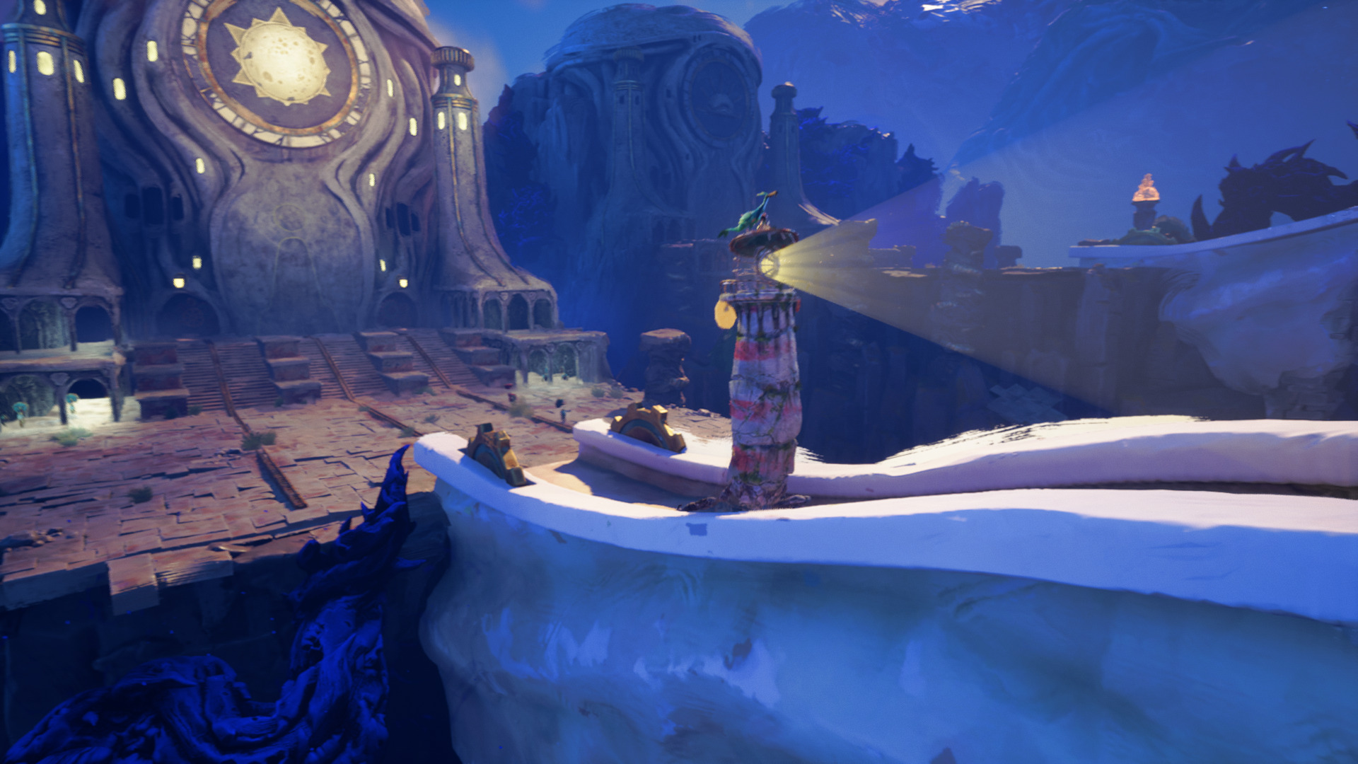 Иногда заворачиваешь не туда и попадаешь в «локации для скриншотов» — больше ни для чего они не нужны Keeper же берёт за основу то, что давно устарело, и не делает попыток развития. Даже когда во второй половине игры правила меняются, проблемы остаются теми же. К примеру, в одном из эпизодов попадаешь в большую открытую локацию, и разработчики не придумали ничего лучше, чем менять положение камеры в зависимости от следующей цели — лишь бы игрок не запутался. Но иногда он всё же путается — если камерой позволяют свободно управлять, Keeper плохо удаётся без слов объяснить следующую задачу, поскольку окружение оказывается скупым на подсказки. При этом визуально игра изумительна — если сюрреалистичность Psychonauts 2 не оставила вас равнодушным, то здесь легко можно растянуть прохождение ещё на несколько десятков минут, рассматривая каждую деталь. В Keeper находишь отсылки и к фантастическим фильмам восьмидесятых с их рукодельными декорациями и существами, и к работам художников начала прошлого века, в том числе Сальвадора Дали и Макса Эрнста. У обоих в первую очередь «позаимствовали» деформированные лепные формы объектов — как на картинах вроде «Великого мастурбатора» и «Ангела домашнего очага». В играх такое редко можно увидеть, так что как минимум ради этого визуального пиршества стоит потратить вечер на прохождение. Да и геймплейно Keeper не совсем уж безнадёжна, просто она долго разгоняется, и к тому моменту, когда это наконец случилось, получать удовольствие от игрового процесса трудно. Возникает дилемма — с одной стороны, игра кажется слегка затянутой: стоило начать трансформации, происходящие во второй её половине, пораньше, пока не угас интерес. С другой — если бы продолжительность решили сократить, мы бы не увидели часть локаций, а увлекательна Keeper во многом благодаря им. Нет желания узнать, в какую сторону будешь крутить следующий рычаг с помощью Прутика, — зато хочется увидеть, какие ещё странные декорации не от мира сего возникли в головах дизайнеров и художников. *** Возможно, отношение к Keeper зависит от того, как часто вы проходите подобные приключения. Если в плане графики ей почти нет равных в этом жанре (сказывается многолетний опыт художников Double Fine), то как игра она получилась скучноватой и даже устаревшей на фоне недавней Sword of the Sea и её предшественниц. И это странно — в случае с создателями Psychonauts, Stacking и других неординарных проектов ожидаешь, что геймплей может быть не самым выдающимся, но как минимум необычным. В Keeper эта необычность есть, но её мало, и она по большей части соседствует с тем, что мы уже много раз видели. Достоинства: