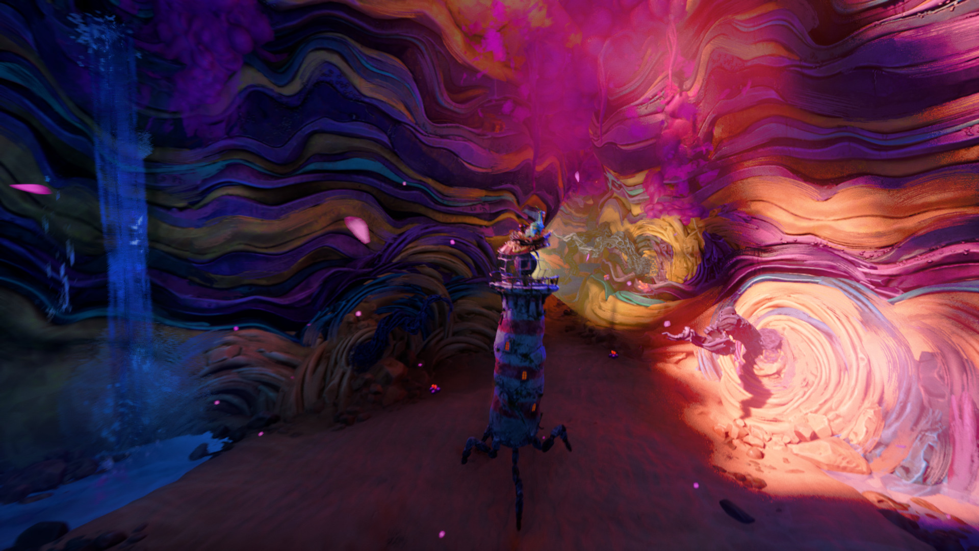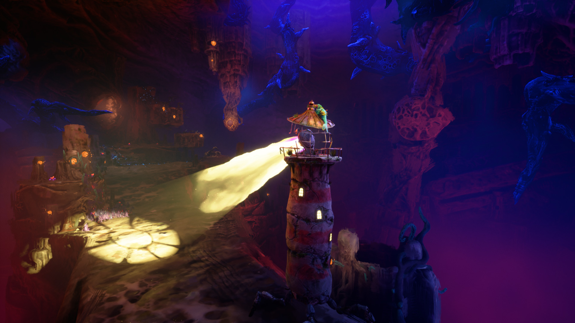 Играли на Xbox Series S Главными героями игр Double Fine частенько становятся не самые обычные персонажи. В Headlander мы управляли головой последнего выжившего во Вселенной и прикреплялись к чужим туловищам, чтобы решать головоломки. В Stacking играли за крошечную куклу, которая могла запрыгивать в матрёшки разных размеров. Разработкой этих проектов руководил один и тот же человек, Ли Петти (Lee Petty), и неудивительно, что в Keeper протагонистом стало нечто ещё более странное — маяк. Да, обычный маяк, который стоит на берегу большого водоёма и своим прожектором разгоняет ночной мрак. ⇡#Мир без людейПетти придумал Keeper во время пандемии COVID-19, когда заняться было нечем и появилось время для прогулок на природе. В новой игре он хотел создать мир без людей — не постапокалипсис с выжженной землёй и руинами вместо зданий, а вселенную, в которой явно когда-то ступала нога человека, но теперь почему-то никого нет. На пути встречаются брошенные автомобили и пустые домики, но нет ощущения, что с миром произошло что-то страшное — да и домысливать нет желания. Просто природа в этом регионе взяла верх, мелкие существа свободно себя чувствуют и заняты своими делами, а старые постройки заросли мхом и травой. В таких условиях абсолютно бесполезным стал маяк, одно из брошенных человеческих творений — суда по морю не ходят, светить ему незачем. И так бы он и стоял без дела, если бы не птица по кличке Прутик, волшебным образом оживившая героя. У маяка появились тонкие ножки, как у паука, и поначалу справляться с новыми «конечностями» ему трудно — он не может держать равновесие и с грохотом заваливается на бок, после чего быстро встаёт. Длится «обучение» несколько минут, а затем маяк начинает нормально ходить и даже совершает рывки, будто делал это всю жизнь. Так начинается путешествие маяка и птицы, которые моментально становятся лучшими друзьями. История подается без слов, но общий смысл понятен — маяк постоянно смотрит в сторону горной вершины и держит к ней путь, а на отдельных участках загадочного региона встречается фиолетовая гадость, которую мы пытаемся уничтожить или прогнать. Что интересно, о прошлом этого мира узнаёшь не из самой игры, а из описания «ачивок» — там рассказывается об Иссыхании, которое сдерживали каменные создания и пытались замедлить некие старейшины. В общем, стандартная история о катаклизме и герое, пытающемся всё исправить.
