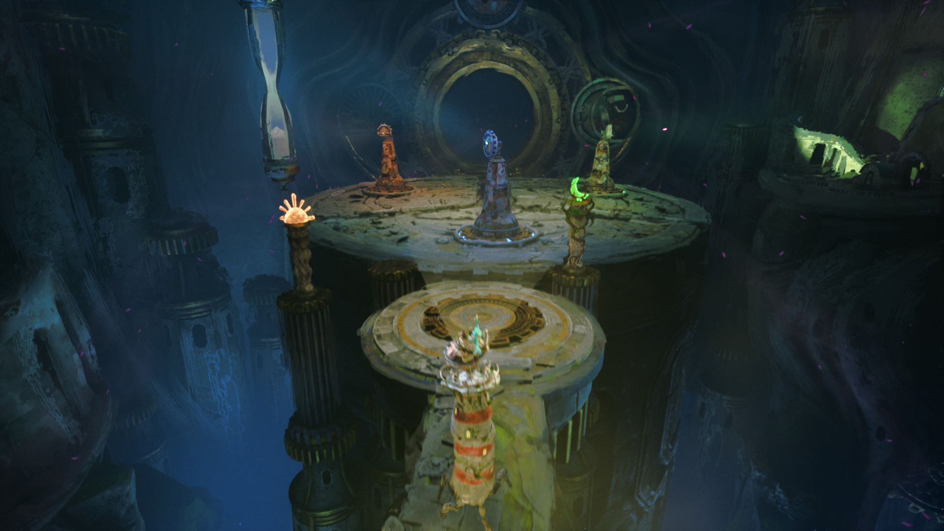 Некоторые элементы окружения реагируют на направленный свет — зверушки жмурятся, бутоны раскрываются При этом предсказуемым повествование не назовёшь — не просто так разработчики старались не показывать в трейлерах то, что происходит во второй половине игры. Портить сюрпризы не буду (в том числе скриншотами — все взяты из первых глав), но Keeper есть чем удивить. Именно такие необычные идеи ждёшь от проектов Double Fine — то, каким образом рассказывается привычная для подобных игр история, удивляет. И удивляет не единожды за четырёхчасовое прохождение. Однако если в повествовательном плане Keeper получилась как минимум любопытной, то геймплейно это один из самых слабых релизов Double Fine. Высокий маяк на тонких ножках балансирует на грани между симулятором ходьбы и приключением, гораздо чаще наклоняясь в сторону первого. Здесь довольно много эпизодов, в которых вы просто прогуливаетесь из одного конца локации в другой, ни с чем не взаимодействуя. А если делать что-то всё же нужно, то задачи максимально простые, и из-за регулярно вылезающих подсказок они становятся ещё легче. Например, мы всегда ходим с включенным прожектором, а специальной кнопкой увеличиваем яркость света, что нужно для преодоления некоторых препятствий. И как только вы подходите к такой преграде, вам сразу же напоминают, какой кнопкой можно фокусировать свет. ⇡#Плавали, знаемИногда требуется помощь Прутика, который в большинстве случаев нас сопровождает — и, опять же, каждый раз очевидно, когда нужно попросить помощь птицы, потому что объекты начинают особым образом поблёскивать. Чаще всего Прутик либо хватается за ручку механизма и крутит её, либо садится на пьедесталы и открывает тем самым двери — ничего сложного нет. Даже самые трудные головоломки будто бы взяты из детских приключенческих игр. Они решаются практически моментально — либо потому что у игрока не так много вариантов того, что он может сделать в той или иной ситуации, либо из-за вылезающих подсказок. Это не то чтобы плохо для игр такого жанра — простенькие «адвенчуры» на 3–4 часа появлялись и появляются регулярно, спасибо задавшей тренд Journey. В этом году уже была Sword of the Sea — тоже коротенькое приключение с красивыми декорациями и элементарными загадками, в котором так же невозможно заблудиться и игрока часто водят за ручку. Разница между ней и Keeper в том, что для создателей Sword of the Sea это был далеко не первый релиз, и они постарались развить привычную формулу: сделали локации более открытыми, добавили взаимодействие с окружением, да и кататься на мече-скейтборде попросту весело.