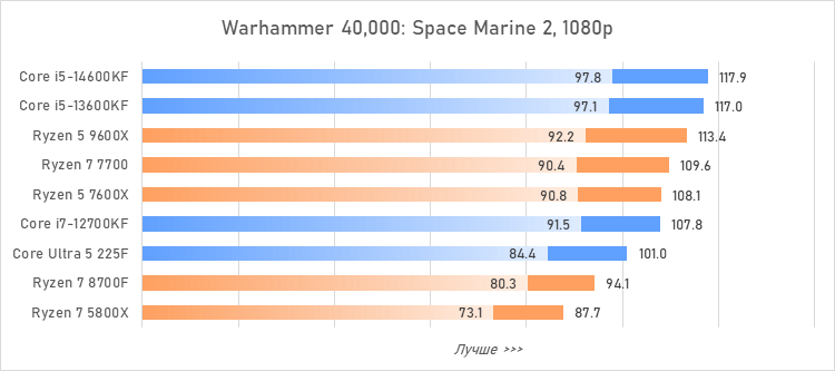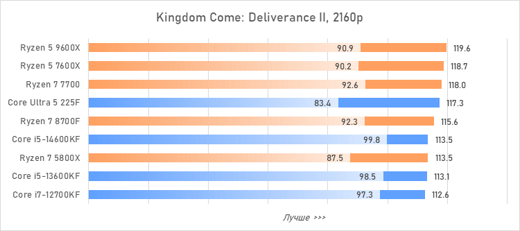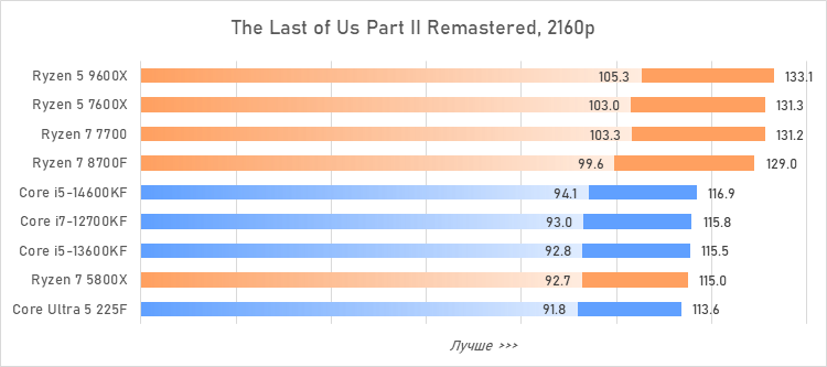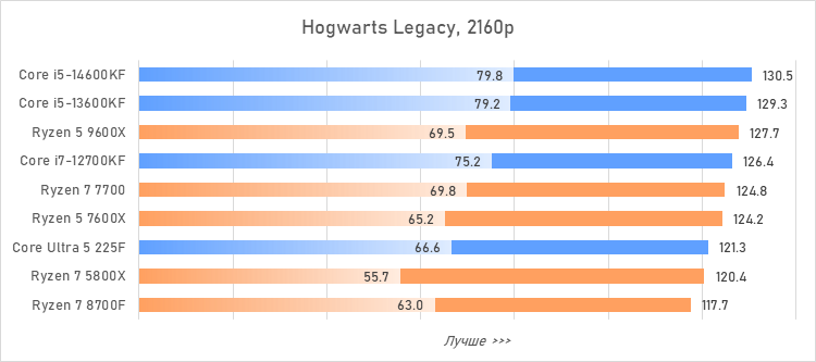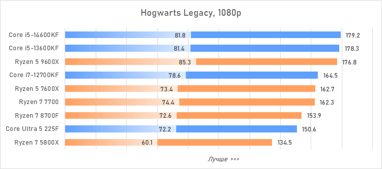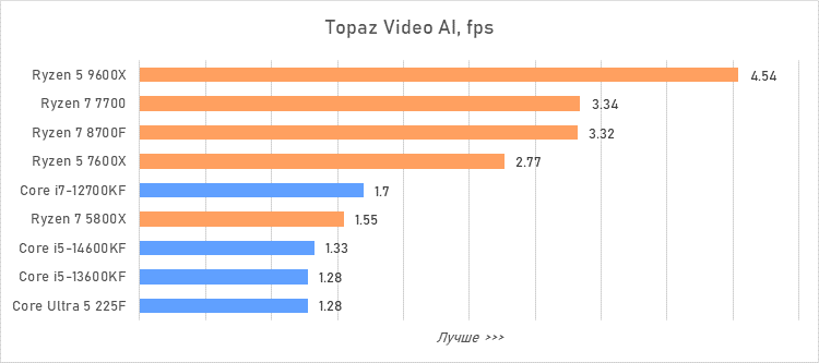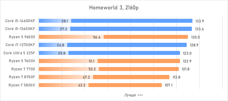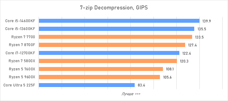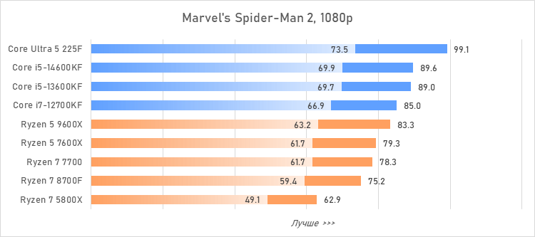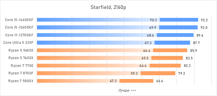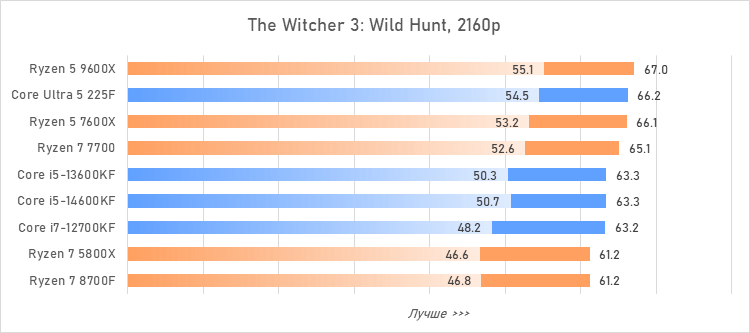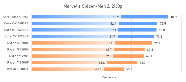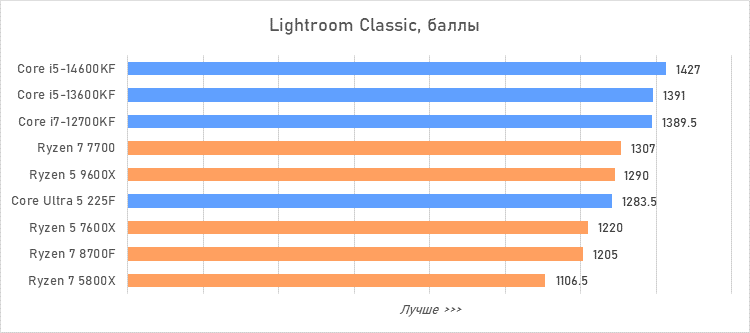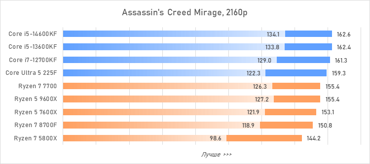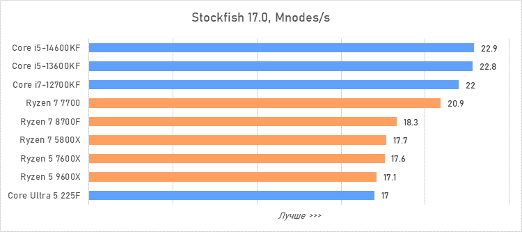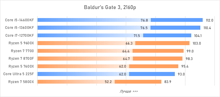 Таким образом, всё сказанное можно свести к довольно простому итогу. Для максимальной производительности прямо сейчас стоит выбирать Core i5-13600KF или Core i5-14600KF. Для сборки универсальной системы на перспективу лучше подойдут Ryzen 7 7700 или Ryzen 5 9600X в зависимости от приоритетов между рабочими задачами и играми. А для компактных и экономичных сборок можно рассмотреть Core Ultra 5 225F.