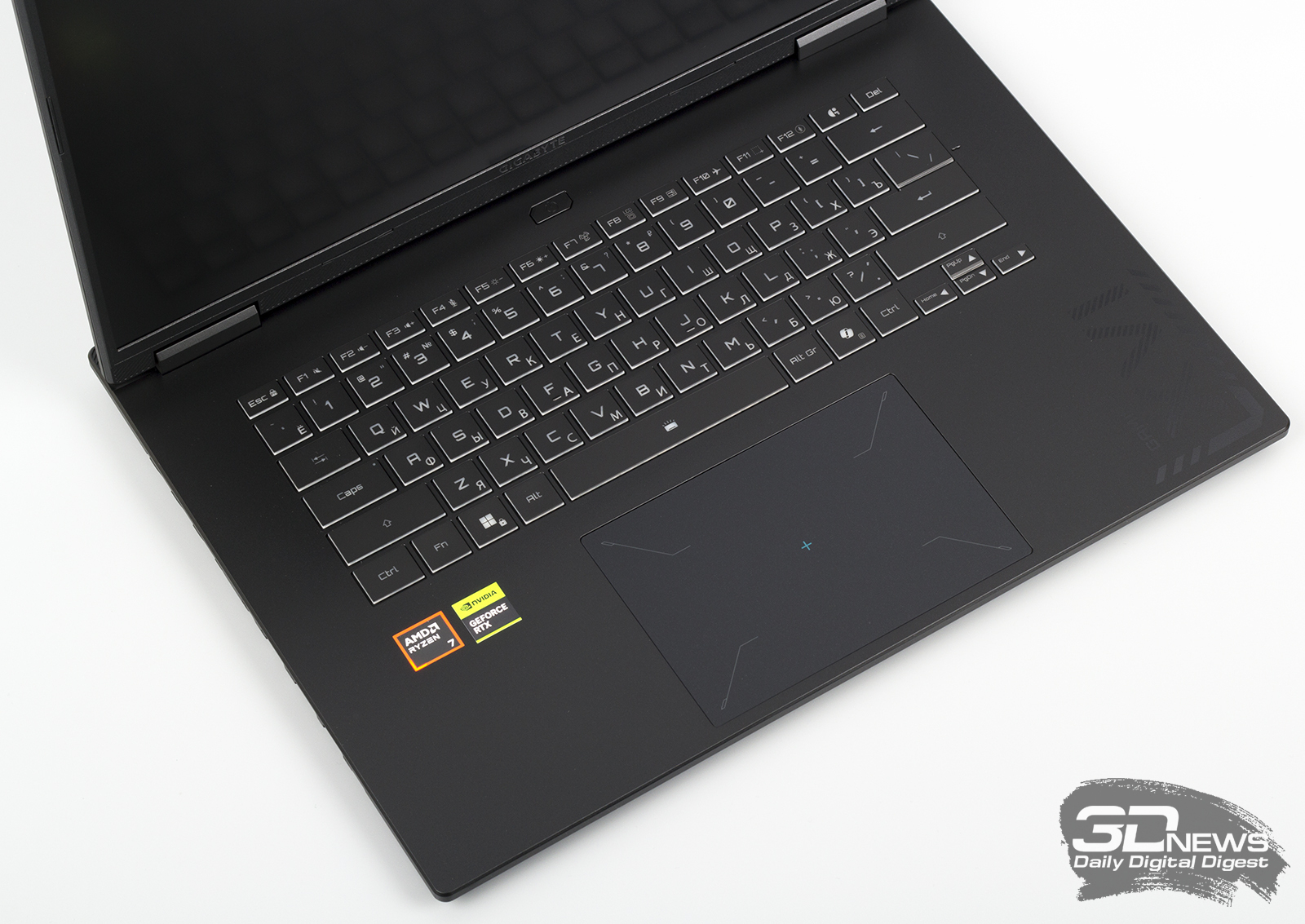 Размеры тачпада составляют 133 × 90 мм — он удобен, точен и отзывчив. Нажатие на сенсорную панель осуществляется с громким, хорошо ощущаемым тактильно щелчком.