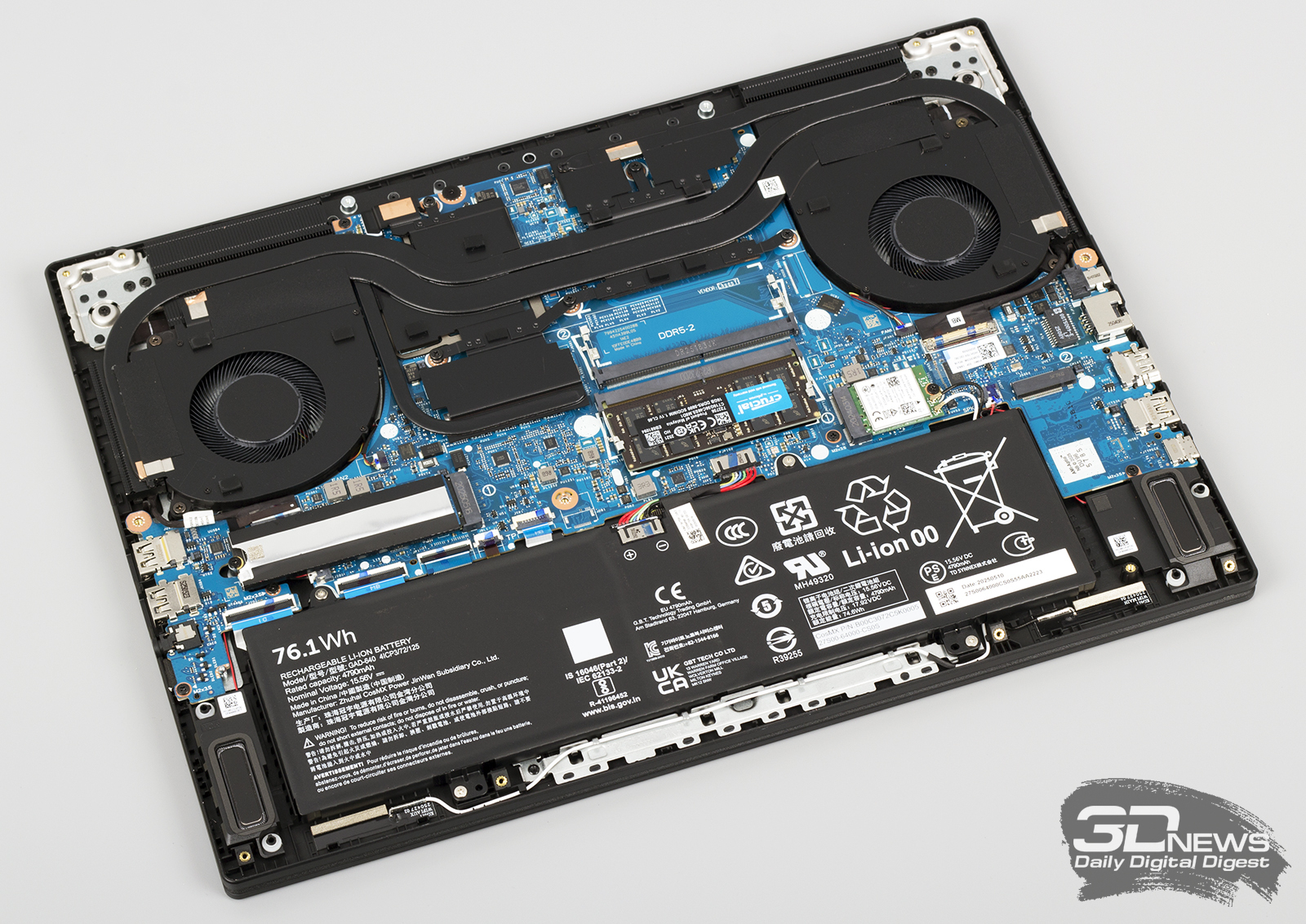 Во-вторых, в протестированной модификации GAMING A16 3VH установлены SSD на 512 Гбайт и 16 Гбайт DDR5-памяти в виде одного модуля. Я нередко рекомендую пользователям не затягивать с апгрейдом системы: сюда так и просятся еще одна планка DDR5-5600 на 16 Гбайт и терабайтный твердотельный накопитель, на котором будут «складироваться» игры. Учтите, что второй M.2-слот работает в режиме PCI Express 4.0 x2.