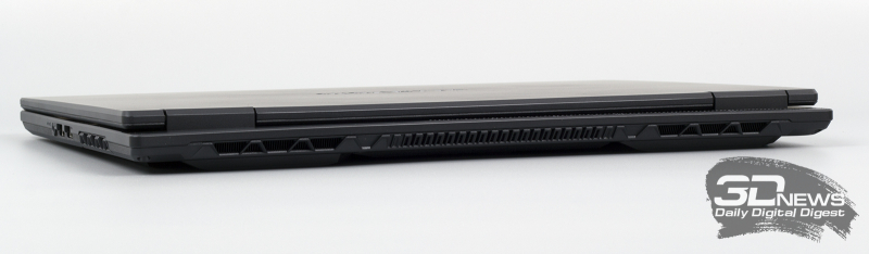 Что касается габаритов компьютера, то герой обзора, что называется, не выделяется из толпы. Масса устройства равна 2,2 кг, а значит, брать систему с собой не составляет большого труда. Толщина корпуса без учета резиновых ножек меняется в диапазоне от 19,5 до 23 мм.