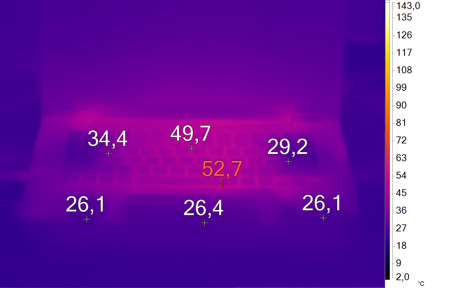 Нагрев клавиатуры ноутбука в режиме «Игры»