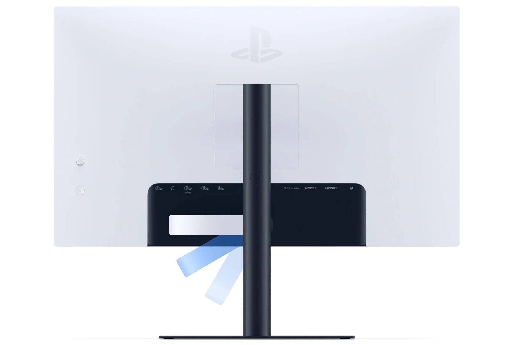 Монитор оснащён встроенным крюком для беспроводного контроллера DualSense или DualSense Edge с функцией зарядки. Набор внешних разъёмов включает два входных HDMI 2.1 и один входной DisplayPort 1.4 для совместимости с игровыми консолями PS5, ПК, Mac и другими устройствами. Также предусмотрены два порта USB Type‑A и один USB‑C, которые можно использовать с адаптерами PlayStation Link или другими устройствами. Помимо этого, монитор оснащён парой стереодинамиков и 3,5‑мм аудиовыходом.