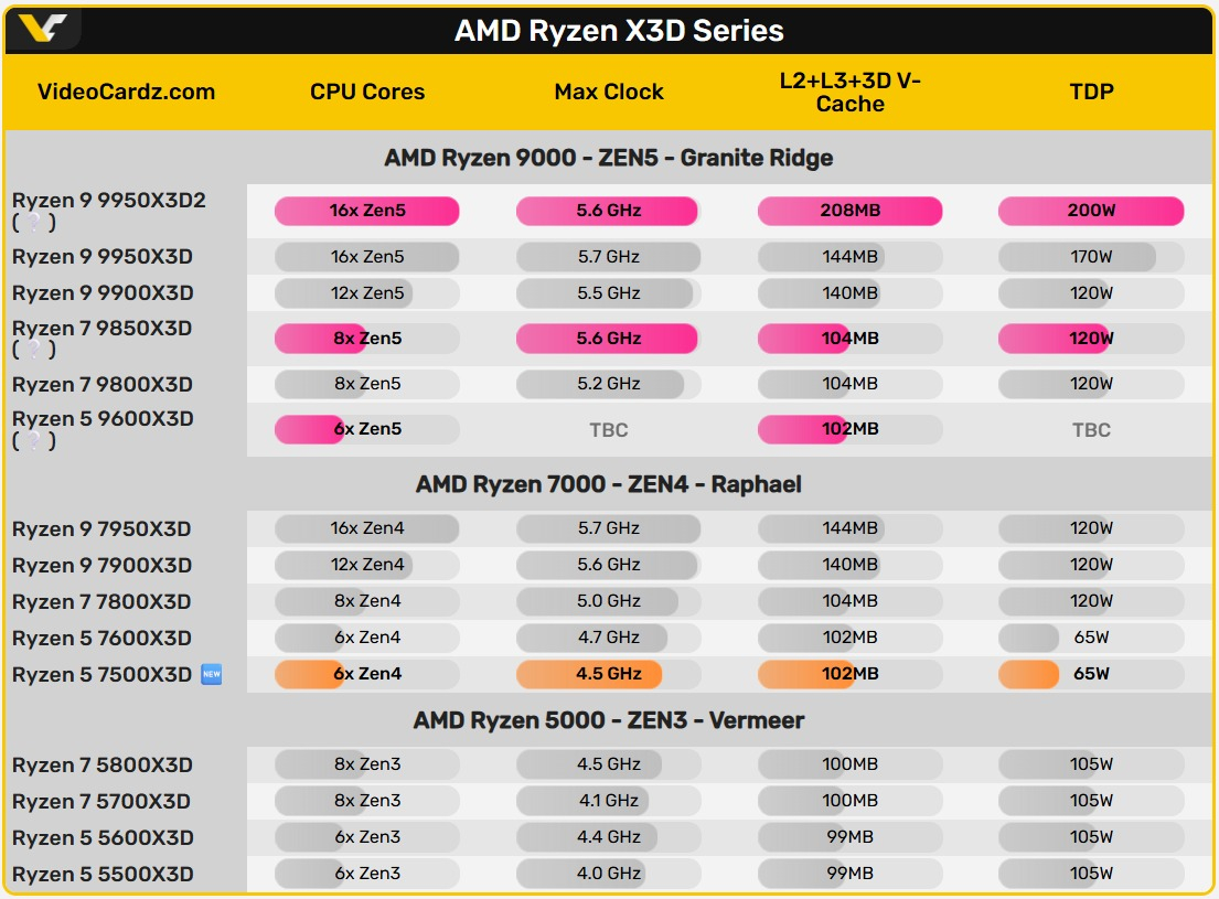Ryzen 5 7500X3D фактически является более доступной версией 299-долларового Ryzen 5 7600X3D, от которого, помимо цены, отличается более низкой тактовой частотой: базовая у старшей модели выше на 100 МГц, а Boost-частота — на 200 МГц. Но вместе с тем Ryzen 5 7600X3D обладал довольно ограниченной доступностью — найти этот процессор можно было далеко не везде. Возможно, с Ryzen 5 7500X3D ситуация будет лучше.