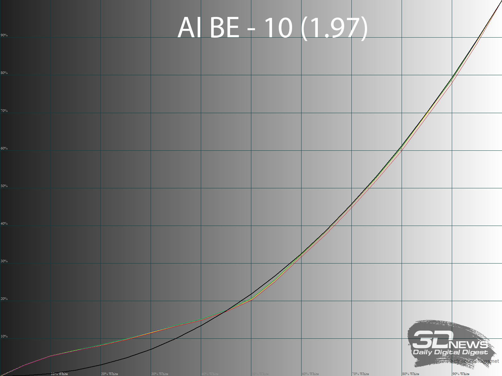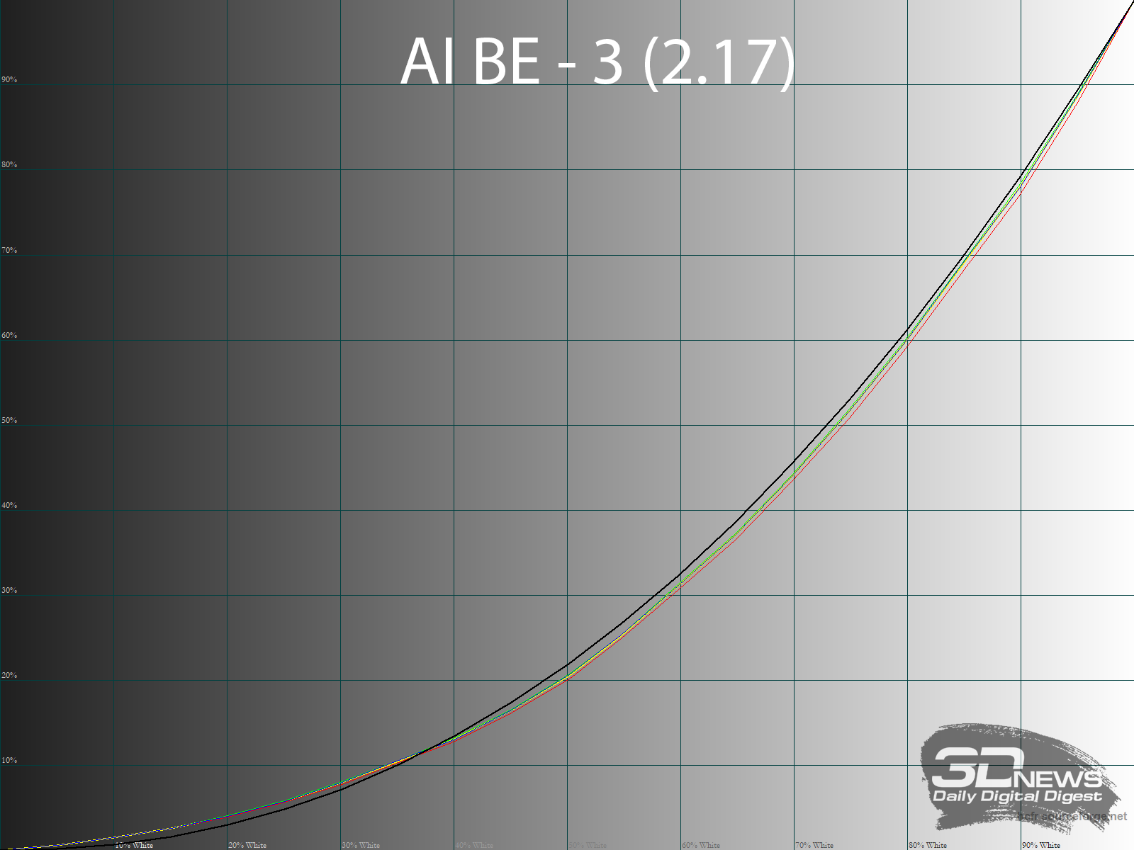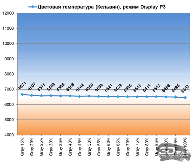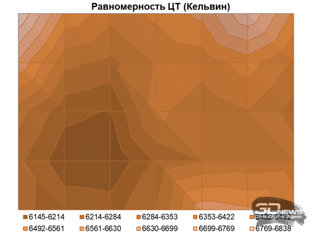 • высокая стабильность цветовой температуры оттенков серого в проверенных режимах и её высокая стабильность в ходе регулировки яркости;