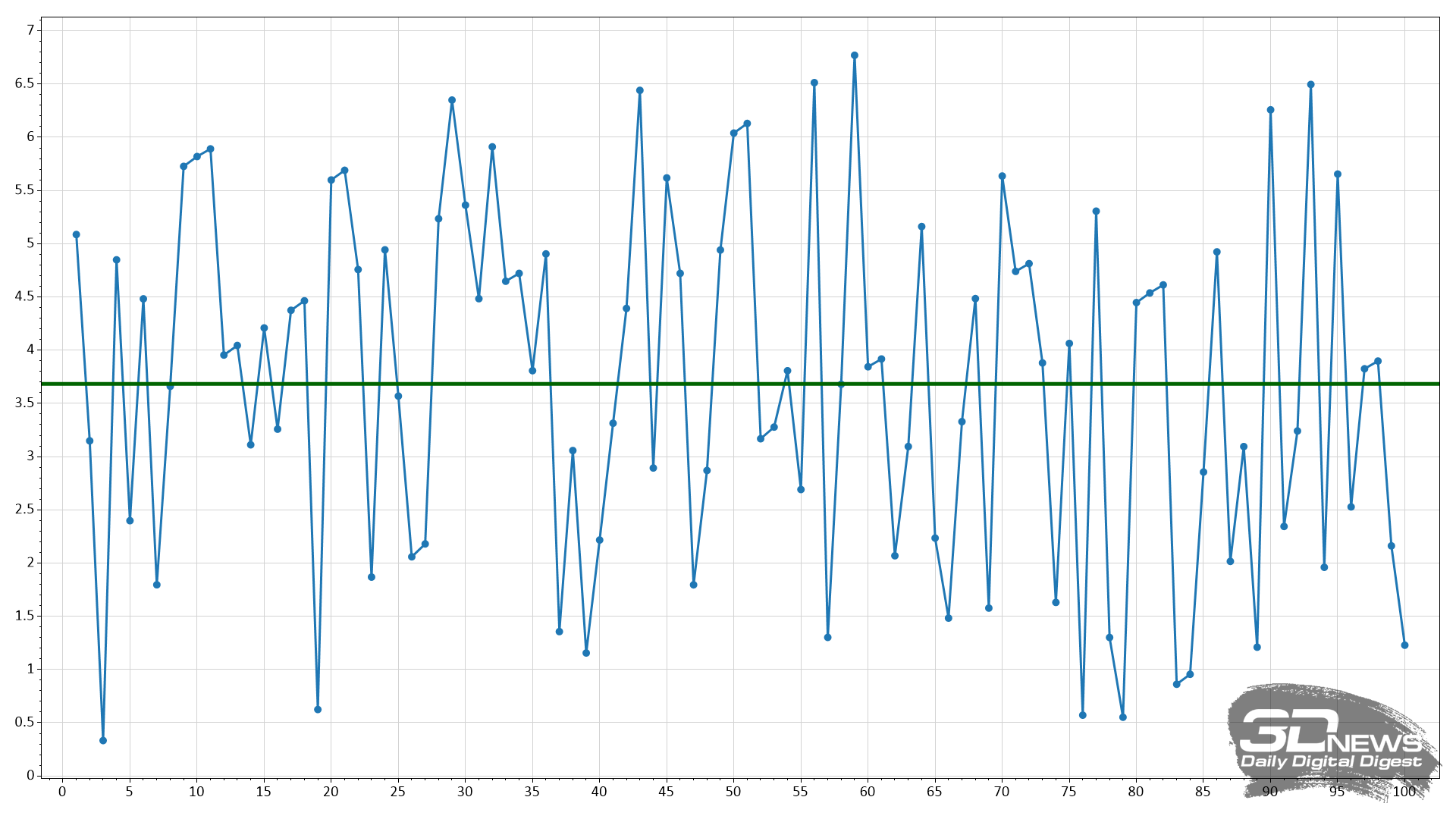 Дополнительно мы измерили время задержки. Монитор продемонстрировал средний инпут-лаг на уровне 3,7 мс – ожидаемый результат от устройства с максимальной частотой 210 Гц.