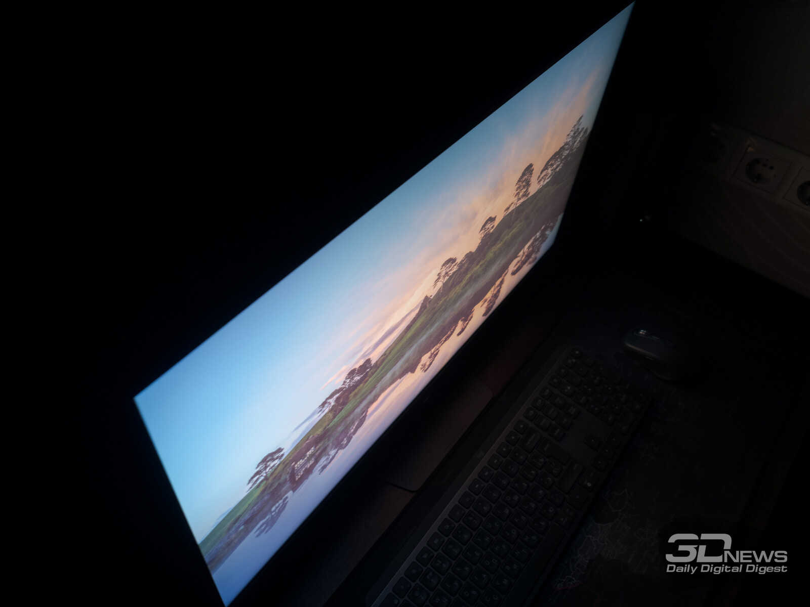 • подсветка с модифицированным спектром на «квантовых точках» (QD) – для снижения нагрузки на глаза и значительного расширения цветового охвата, который действительно вырос;
