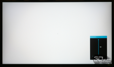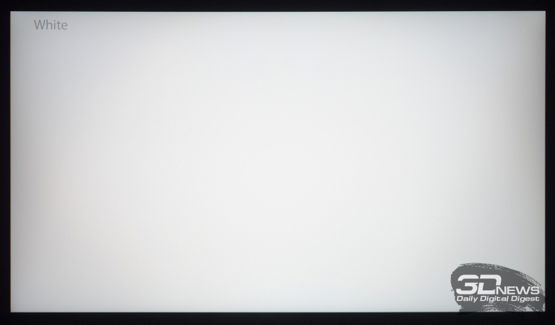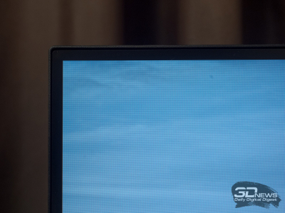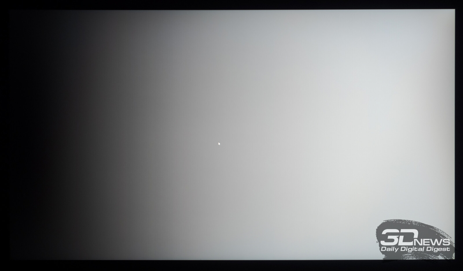 При стандартном положении перед экраном на расстоянии 60-70 см проявляется эффект виньетирования – затемняются края изображения, что заметно на светлых полях. Чем ближе вы находитесь к экрану, тем заметней эффект. С расстояния от 100 см и дальше эффект практически полностью исчезает, но для 27-дюймового экрана – это, пожалуй, далековато для комфортной работы.
