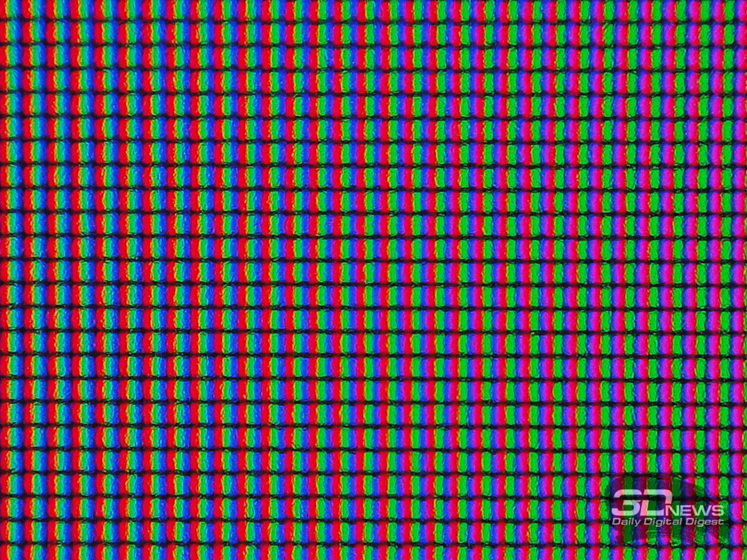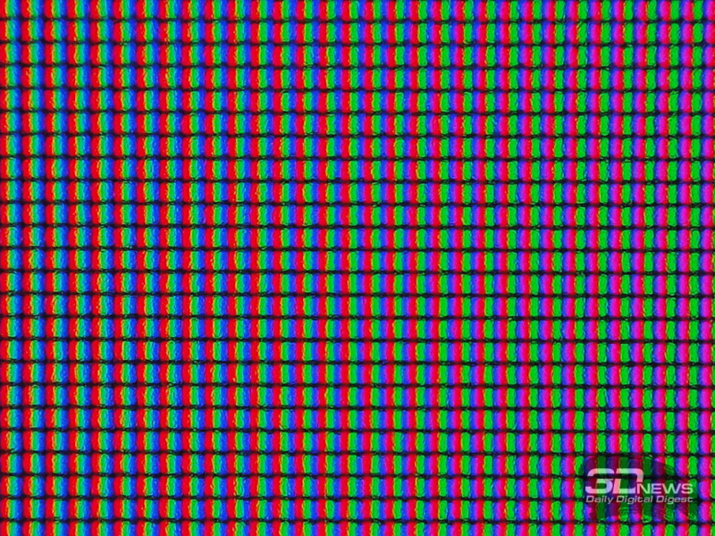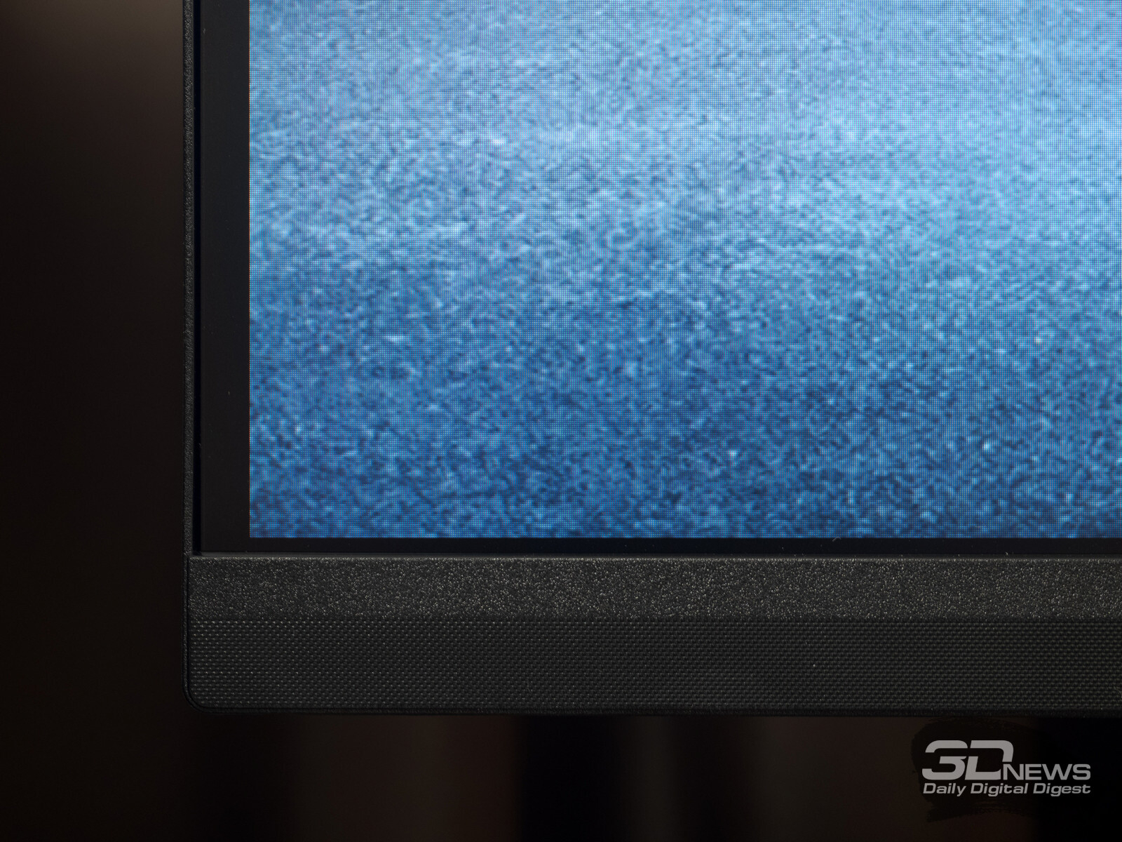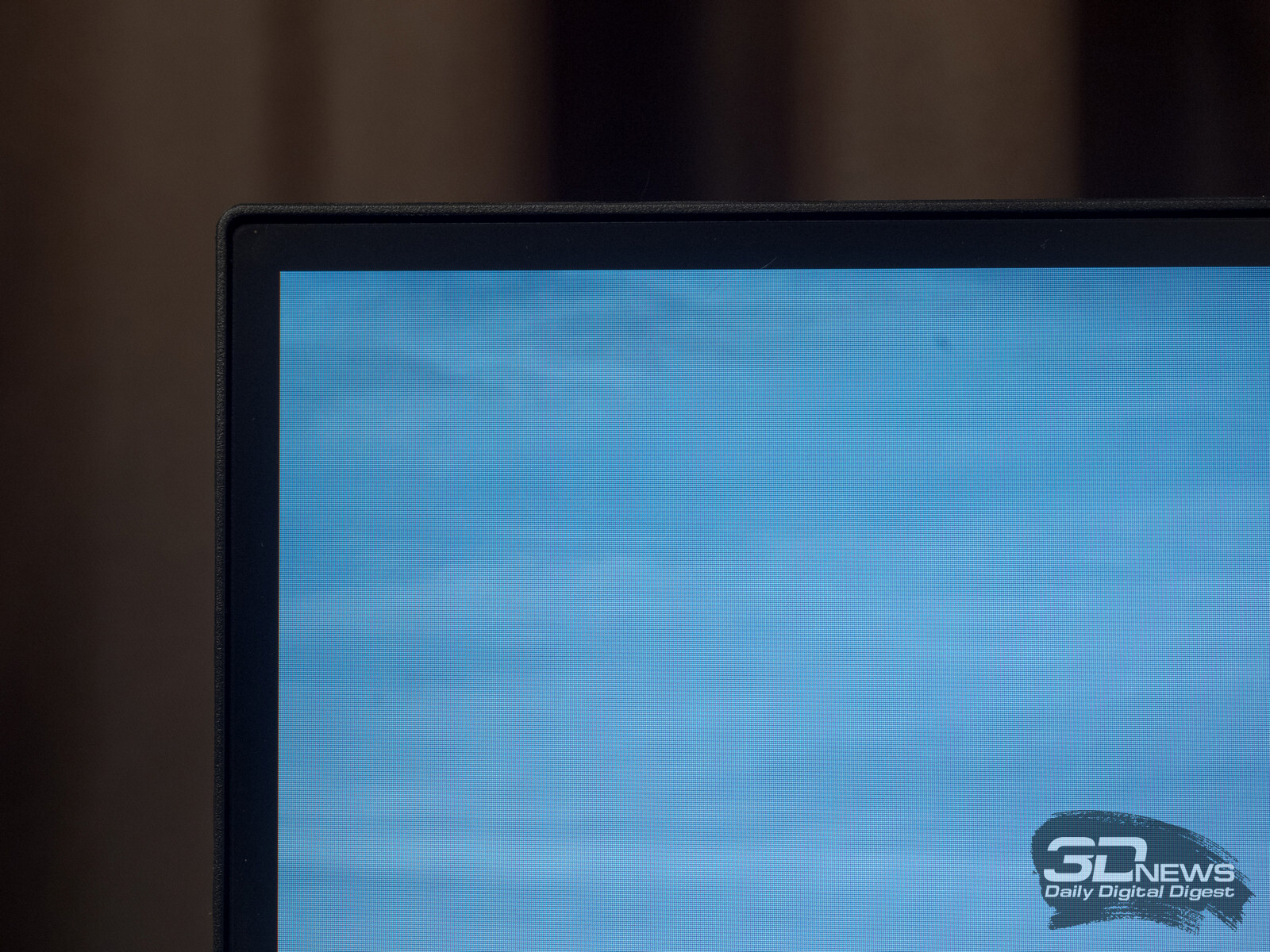 Матрица монитора оснащена полуматовой защитной поверхностью. Различимый кристаллический эффект в данном случае должен отсутствовать, а антибликовые свойства сохранены на достойном уровне.