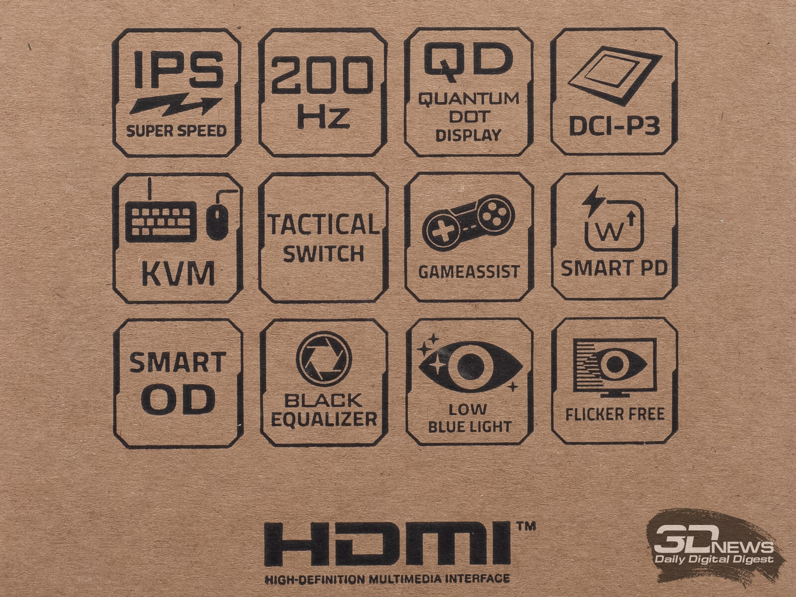 Для героя данного обзора подходят все доступные варианты видеоинтерфейсов, однако, если вы хотите раскрыть весь потенциал монитора (10 бит + 200-210 Гц + HDR), оптимальным выбором будет подключение через DisplayPort. Игровые приставки можно подключить через HDMI 2.0, а для работы с современными ноутбуками воспользоваться кабелем USB Type-С. Оба кабеля придётся приобрести самостоятельно.