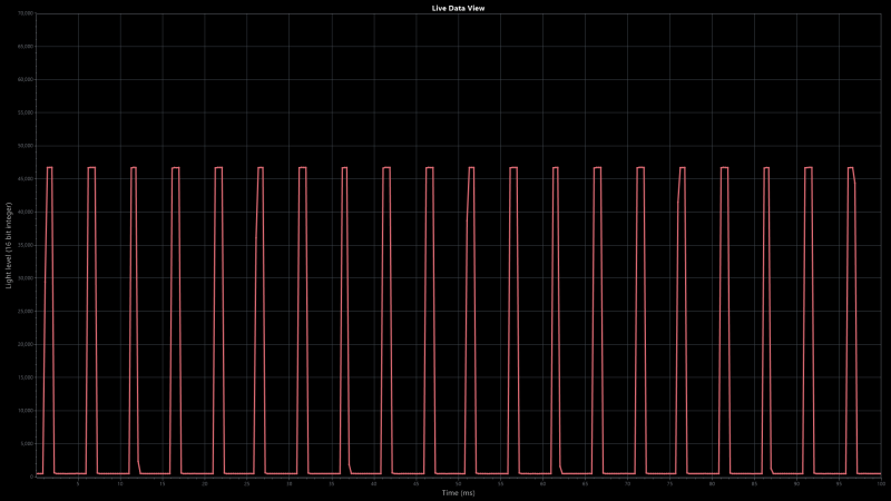 Изучаемая модель монитора использует продвинутую систему подсветки класса Flicker-Free, что указывает на отсутствие мерцания. В ходе инструментальной проверки это было подтверждено – присутствуют лишь незначительные, – допустимые пульсации на уровне ~1 %.
