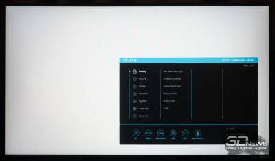 Между тем использование новой матрицы повлекло за собой возникновение пары неприятных особенностей и даже недостатков. Монитор Gigabyte не смог впечатлить нас равномерной подсветкой на светлых и тёмных оттенках, а слабые углы обзора и пониженная стабильность изображения привели к тому, что на близком расстоянии до экрана (стандартные 60-80 см) на нём проявляется эффект виньетирования, а любое изменение угла просмотра быстро меняет цветопередачу картинки – это сложно показать на фотографиях, но в реальном использовании бросается в глаза.