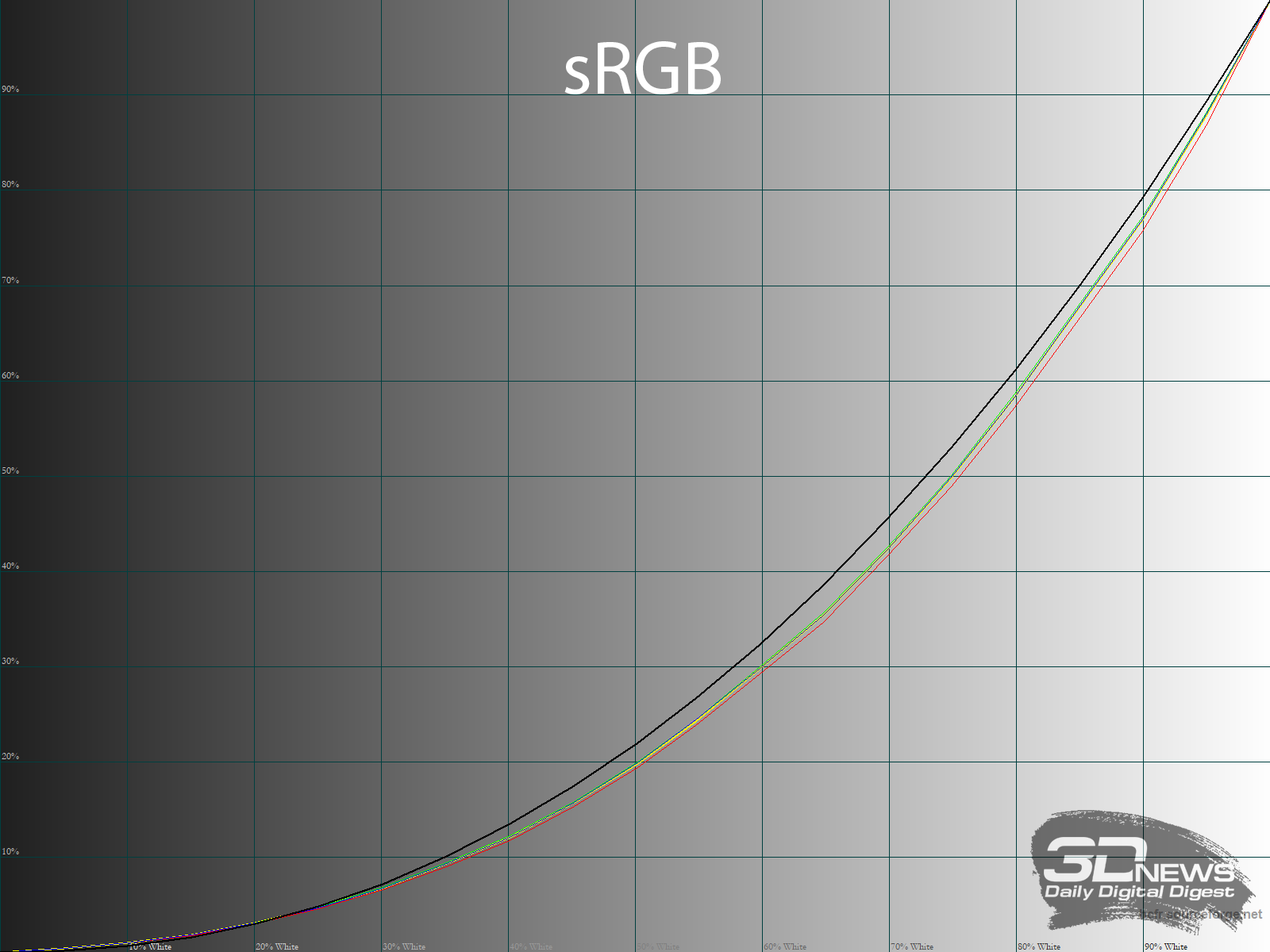 • настроенные на среднем уровне режимы эмуляции стандартных цветовых пространств – производитель заметно ошибся с установкой гаммы: завышен контраст, плохо различимы глубокие тени;