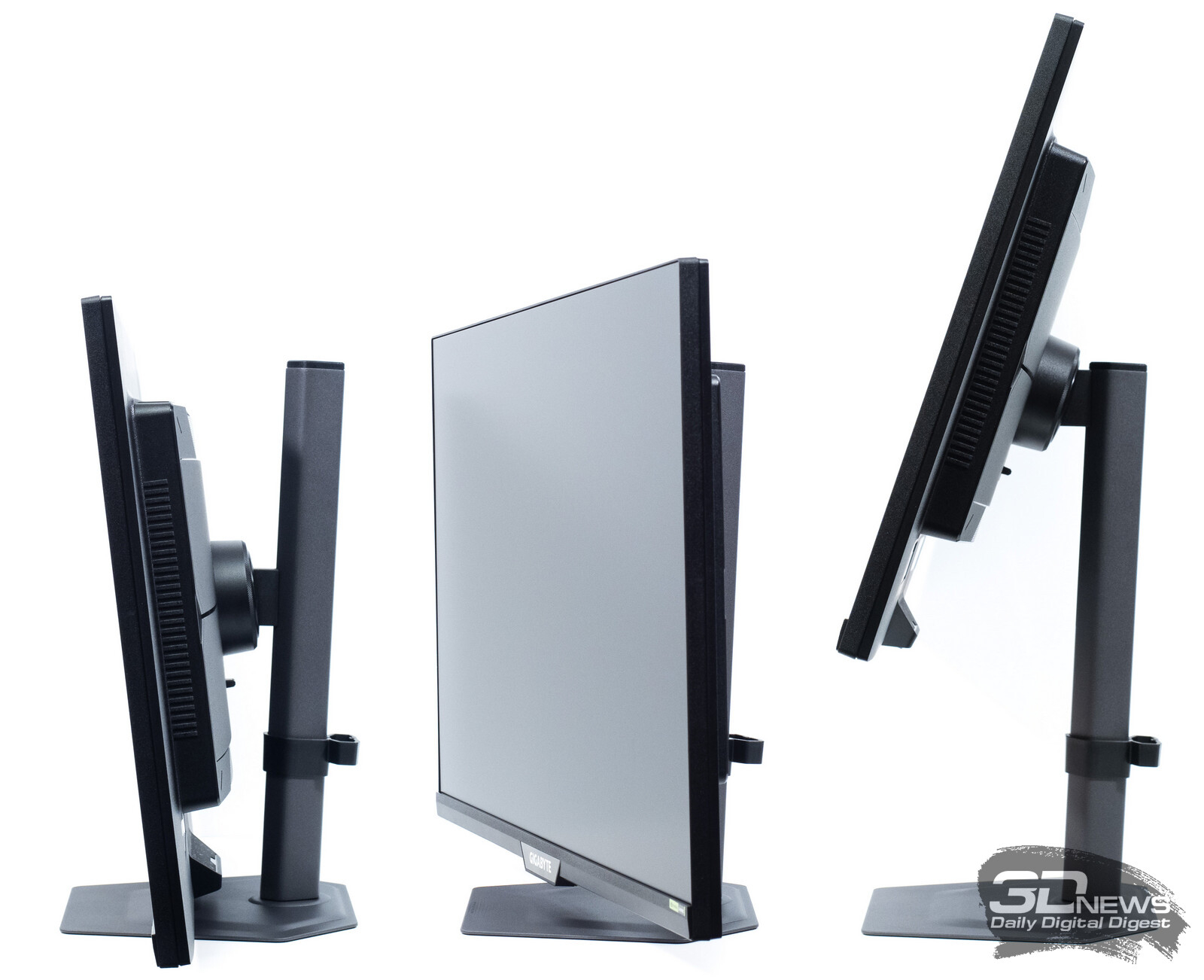 В вопросе эргономики подставки доступны три вида регулировки: наклон в диапазоне от -5 до +21 градуса, поворот корпуса на 15 градусов вправо-влево и изменение высоты в диапазоне 0-130 мм.