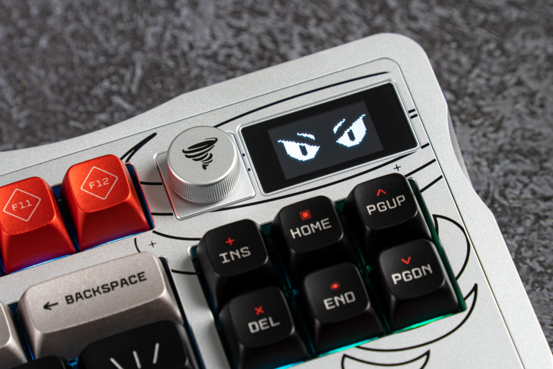 «Живой элемент» внутри OLED-экрана с анимированными глазами реагирует на действия игрока и текстовые команды. Глаза оживают при стрейфах (чередование нажатий a-d-a-d-a-d), ускорении (обычно клавиша Shift в играх) и переходе в скрытный режим (обычно команда назначена на Ctrl). Также клавиатура понимает различные текстовые команды — от «GG» до «WTF». Разработчики отмечают: не все триггеры раскрыты — некоторые секреты нужно открывать прямо в игре.