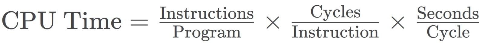 Время, затраченное на исполнение некой программы (обратная к нему величина, кстати, соответствует производительности вычислительной системы), вычисляют как произведение общего числа инструкций в этой программе, среднего количества процессорных циклов, затрачиваемых на исполнение каждой инструкции, и длительности единичного цикла. CISC-подход подразумевает заметное снижение величины третьего сомножителя за счёт некоторого увеличения второго, RISC же — наоборот (источник: Wikimedia Commons)