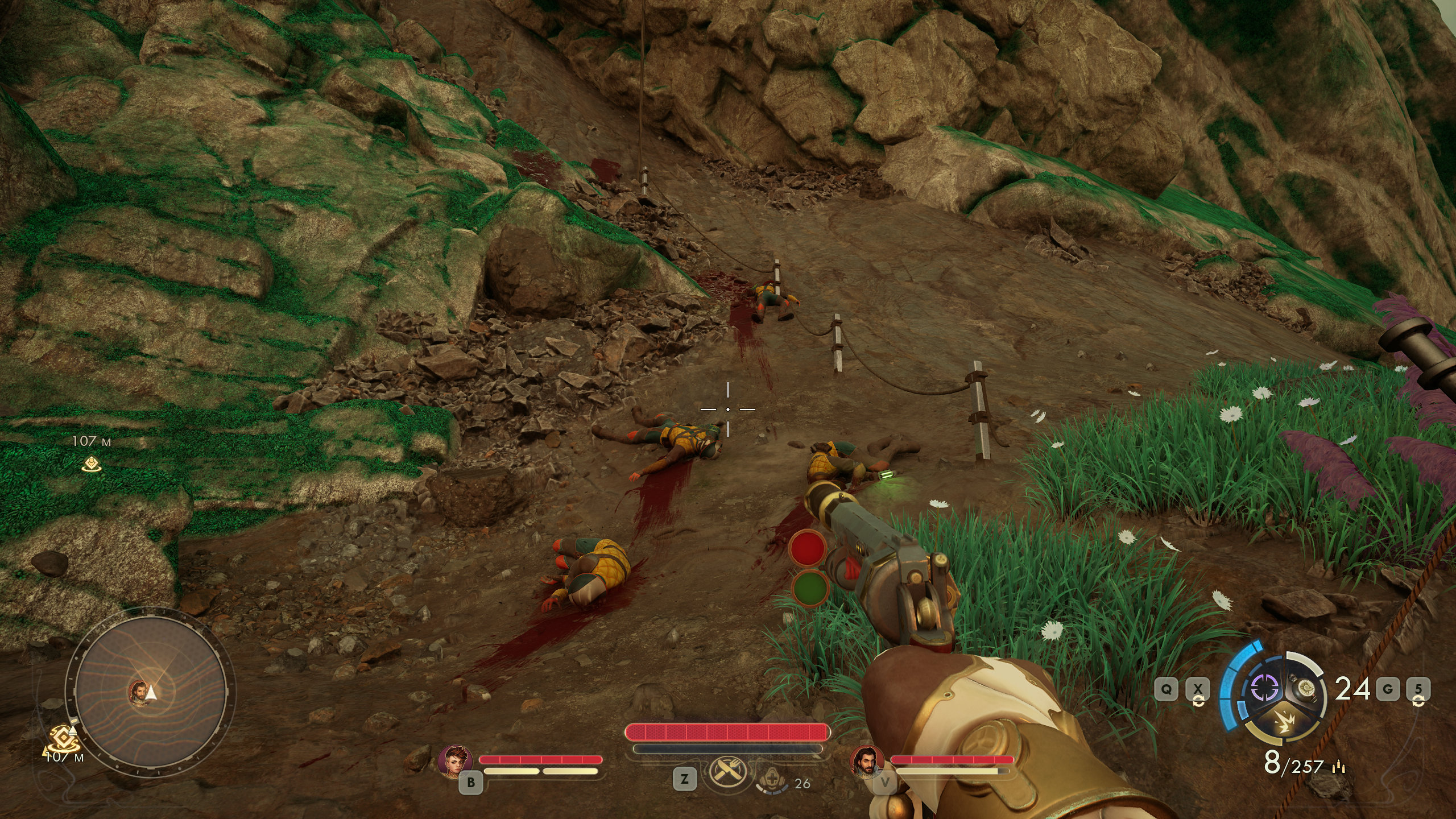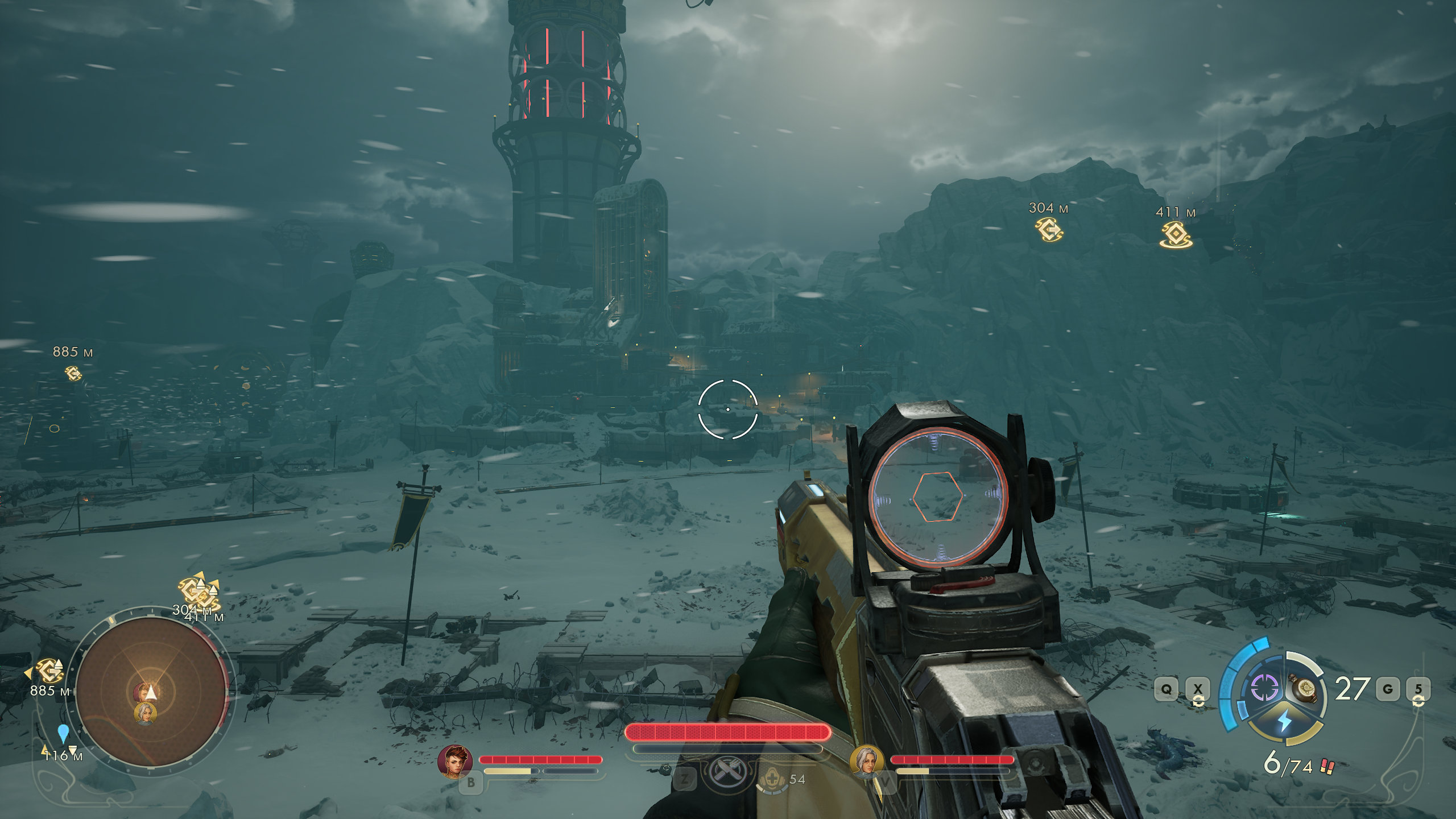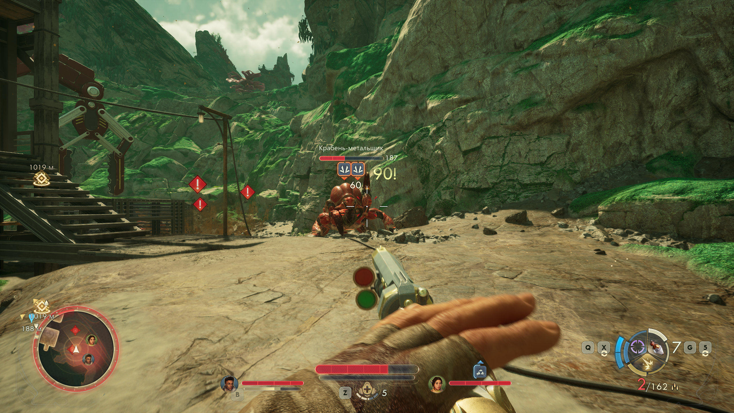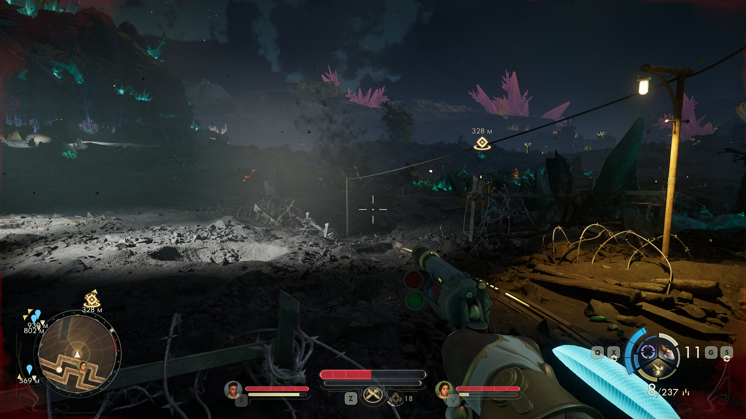 Вы получите устройство, которое поможет использовать аномалии для достижения новых мест. Такой вот элемент метроидвании ⇡#Капитализм. Капитализм никогда не меняетсяОсновная история начинается с поиска предателя, из-за которого миссия на «Горизонте» пошла наперекосяк. Инструментов в нашем распоряжении немного — космический корабль «Инкогнито» да верный напарник Найлз, который и спас протагониста из ледяного сна. Как и первая часть, структурно The Outer Worlds 2 состоит из путешествий по нескольким планетам и станциям. Первая остановка на пути — тропический Эдем. К счастью, разработчики не погнались за трендом на генерацию локаций. Каждый мир представляет собой обширную, но ограниченную зону для исследований. Общая территория заметно увеличилась по сравнению с предшественницей, но не скатилась в масштабы ради масштабов. На каждой планете найдется по одному-два населенных пункта, где обосновалась одна из фракций, и с десяток-другой точек интереса. The Outer Worlds 2 умело подталкивает к изучению окрестностей. С одной стороны, она не заваливает иконками. Взгляд зацепился за что-то интересное — пошли и проверили. При этом на карте заранее выделены все строения. Если где-то за перевалом стоит одинокая лачуга — это будет заметно. Но никаких навязчивых стрелок, маркеров и счетчика процентов неисследованных зон. Идите куда хотите. Если, конечно, сможете совладать с агрессивной фауной — автоматической подстройки уровня врагов нет.