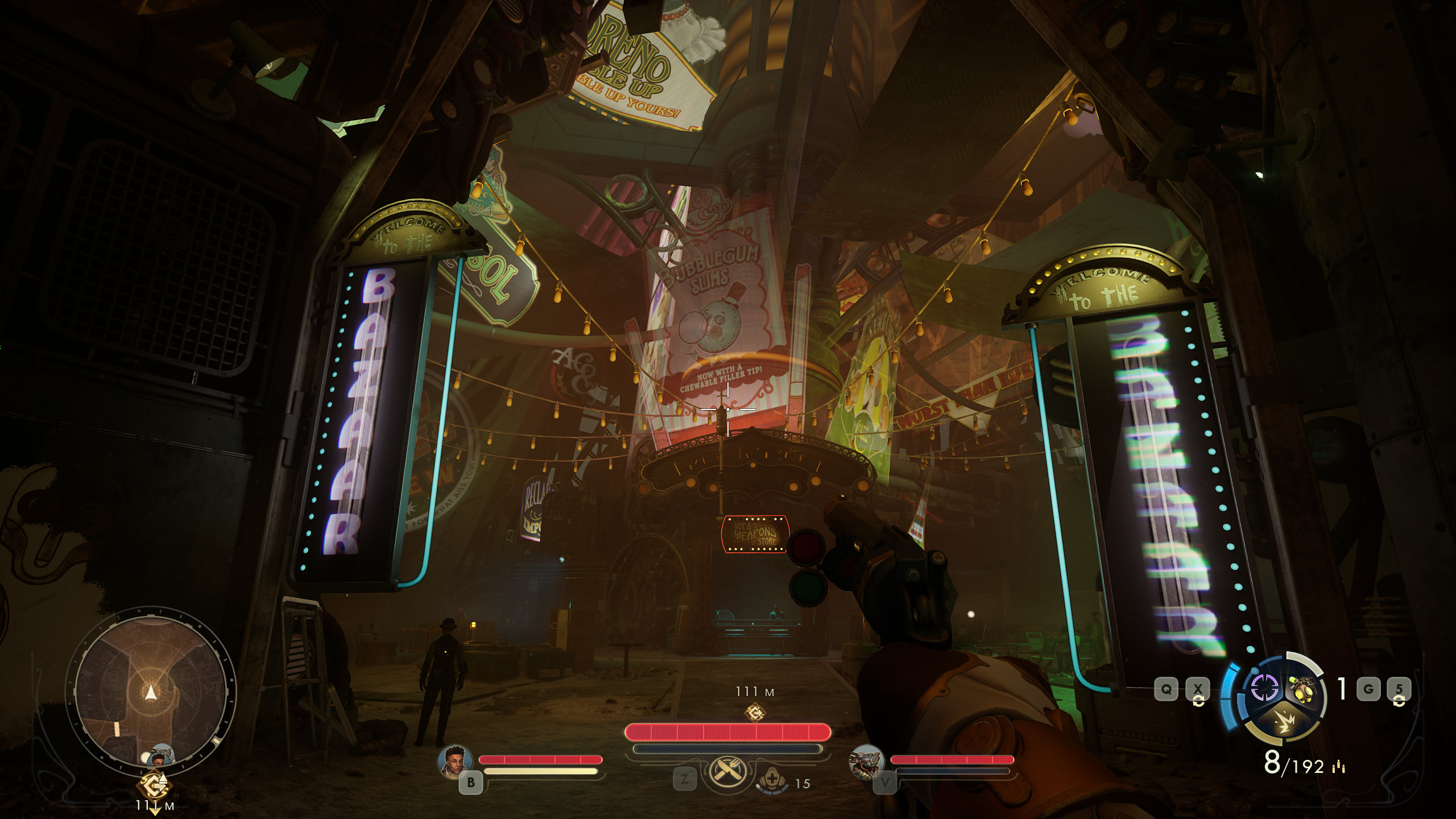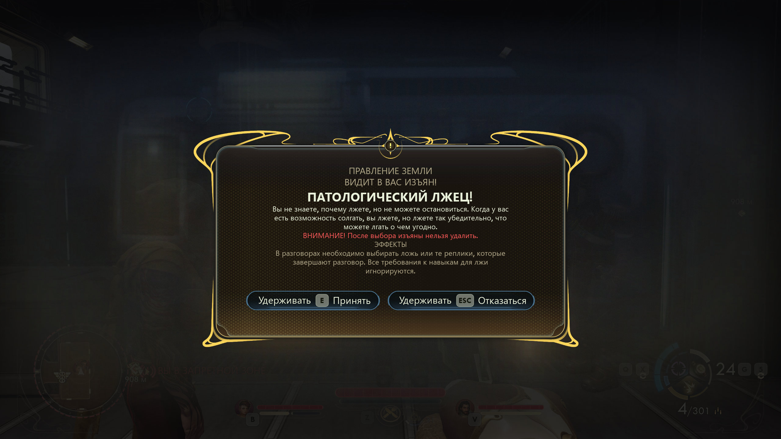 Вид от третьего лица реализован неплохо. А с учетом весьма эксцентричных нарядов, им иногда даже хочется пользоваться Привычные характеристики отсутствуют, а ключевое место в прокачке отведено навыкам, коих полтора десятка: от владения оружием до науки и лидерства. И все они так или иначе влияют как на игровой процесс, так и на возможности в отыгрыше роли. К примеру, взлом систем позволяет обходить технические запреты и увеличивает урон по автоматонам. А красноречие не только дает возможность в диалогах склонять на свою сторону собеседника, но и увеличивает урон по людям. Систему навыков дополняют способности — каждые два уровня можно взять уникальный талант, усиливающий определенные стороны протагониста. К примеру, один позволяет оглушать роботов с помощью взлома, другой дает временное ускорение после незаметного убийства, и так далее. Таких черт под сотню. А некоторыми перками можно обзавестись, просто играя и выполняя неочевидные условия. Но чаще придется решать, есть ли у вас недостатки. В зависимости от стиля прохождения, игра порой будет подкидывать вам изъян — пассивный талант, который позволяет те или иные черты ценой разномастных штрафов. К примеру, часто крадетесь — можете взять бонус к скрытности, только вот каждое приседание начнет сопровождаться громким хрустом колен. Принять ли подобное предложение? Решить нужно здесь и сейчас, второго шанса не будет. Есть и куда более забавные варианты. К примеру, клептоман подбирает все предметы перед собой. А воришек здесь никто не любит. Часто выбираете ложь в диалогах? Тогда можете стать патологическим вруном, и во всех разговорах будете обязаны отвечать только враньем (при наличии подобной опции). И вам всегда поверят!