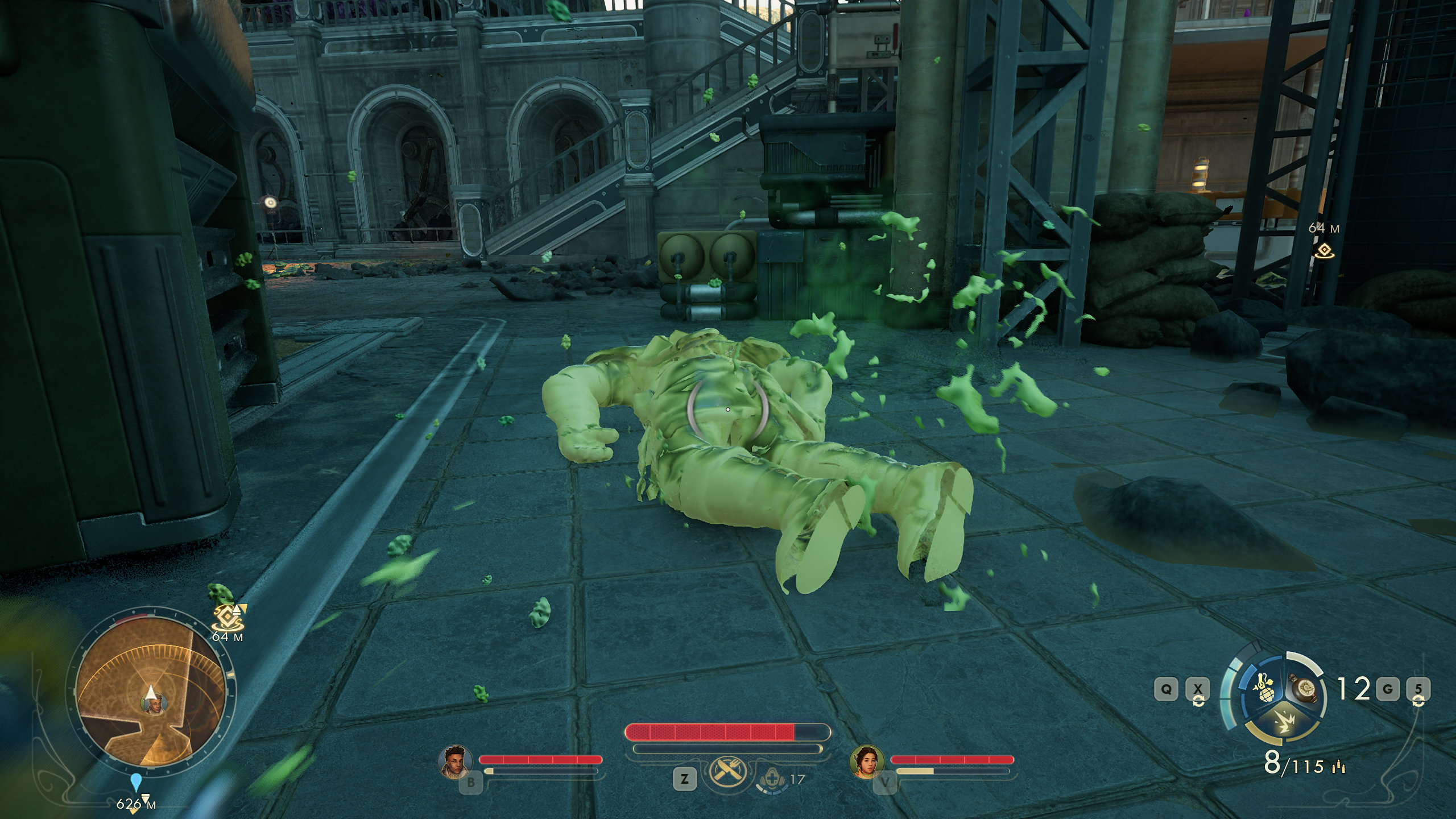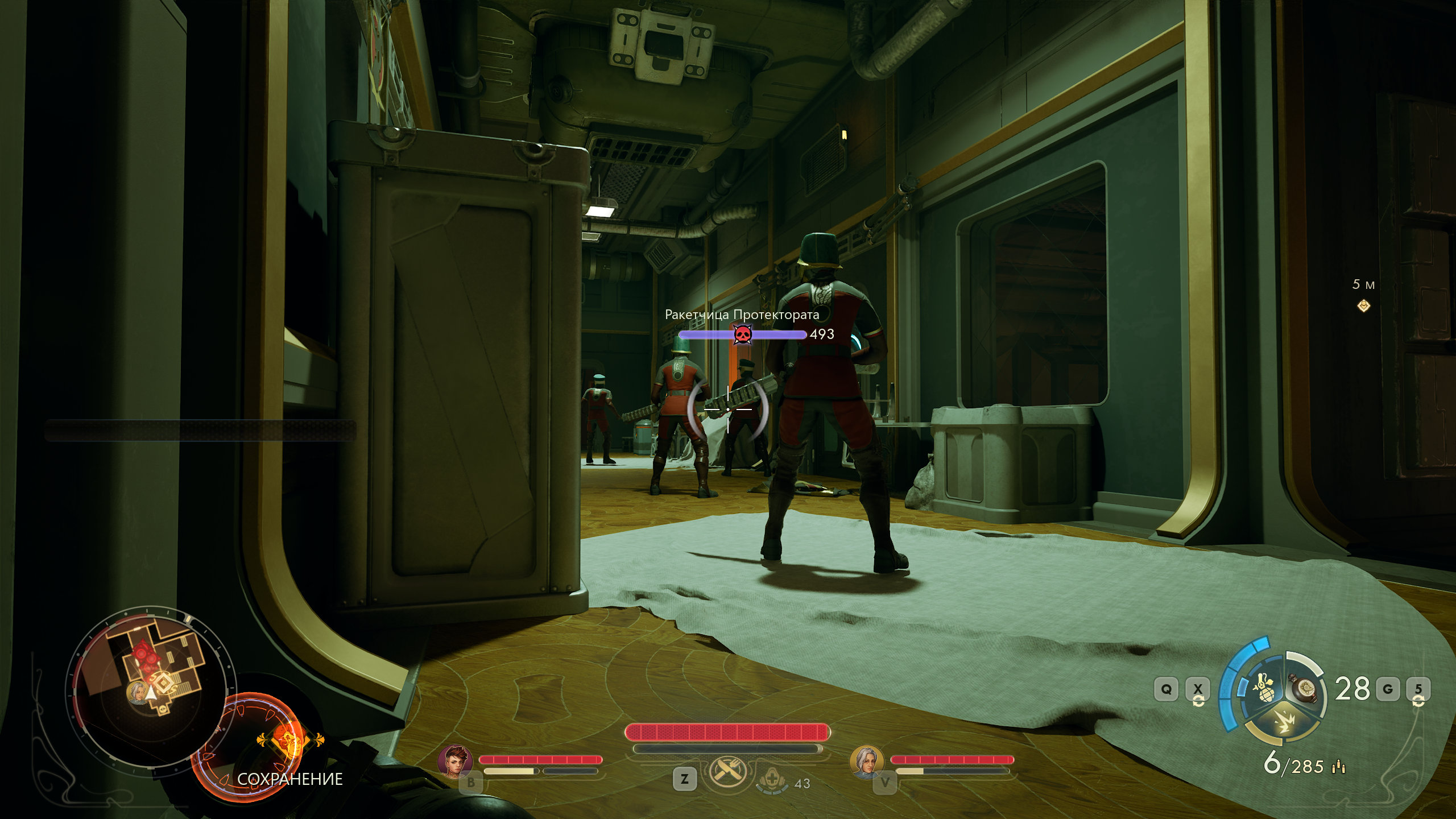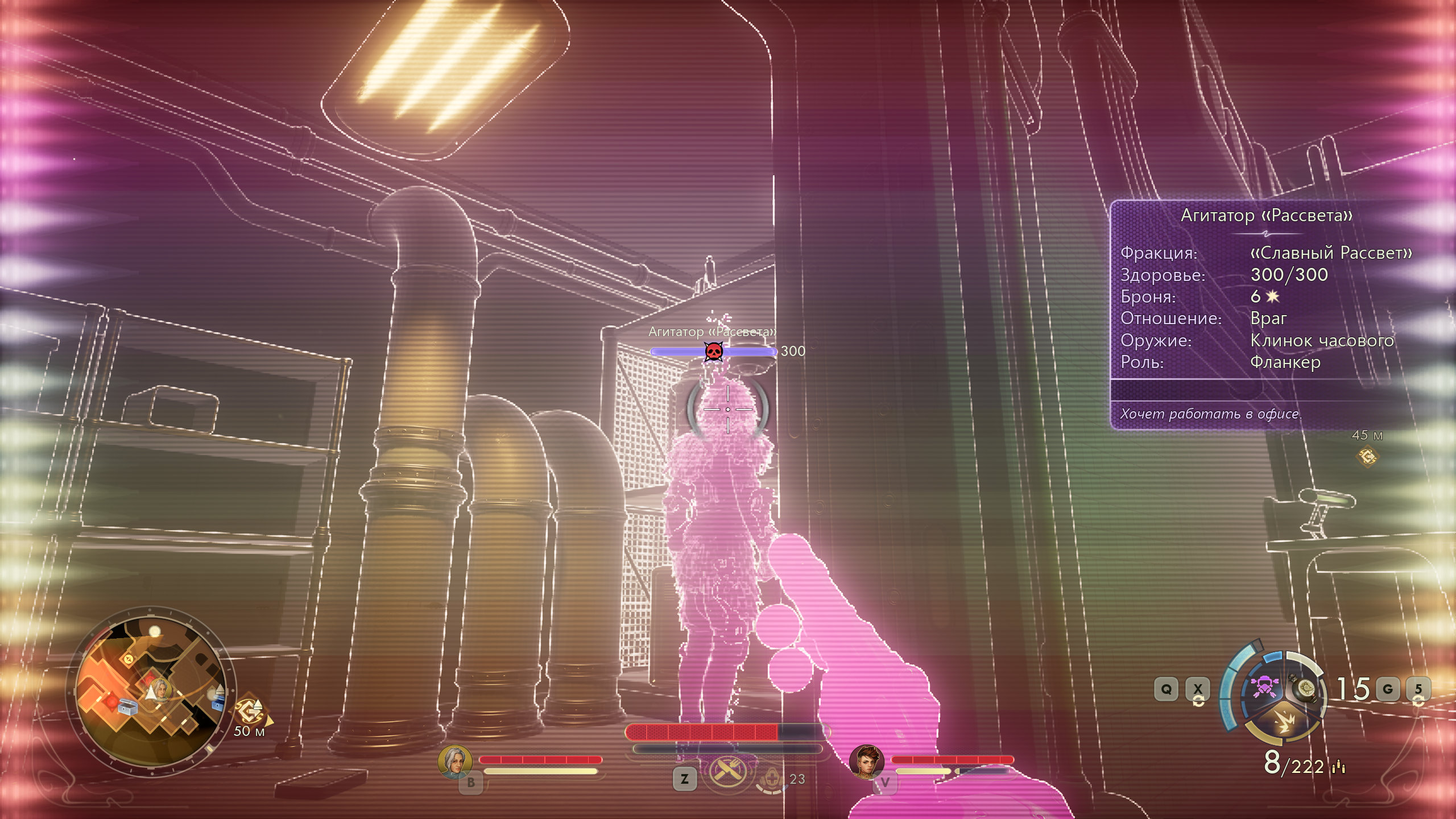 Даже если вы не прокачивали скрытность, все равно можно подкрасться к противнику и нанести бонусный урон Нелинейность The Outer Worlds 2 строится сразу на нескольких уровнях. Вы выбираете как стиль прохождения, так и сторону, к которой присоединиться (или пойти против всех). Локации зачастую предлагают множество ходов, а в лучшие свои моменты напоминают Deus Ex с его многоэтажными комплексами, различными путями и удобно проложенными вентиляциями. Чаще всего это важные сюжетные миссии, в которые явно вложили весомую часть бюджета. Остаться исключительно пацифистом вряд ли получится, но подход к сражениям вы тоже выбираете сами. Ближний и дальний бой могут быть одинаково эффективны, и оба хорошо проработаны. Стрельба стала еще приятнее — каждый выстрел отлично ощущается, особенно из крупного калибра. Впрочем, ничем не хуже возможность огреть врага огромным двуручным молотом. Или оставаться незамеченным, вырезая противников тычками в спину или с помощью оружия с глушителем, словно Сэм Фишер. К сожалению, искусственный интеллект противников остался на прежнем (невысоком) уровне. Они по-прежнему глуповатые, а единственное, что вызывает у них подозрение — это труп товарища. К счастью, теперь можно обзавестись гаджетом, который буквально растворяет бездыханные тела, позволяя заметать следы преступлений. По-прежнему можно замедлять время, а из новинок — временный энергетический щит как у Мастера Чифа, и сканер окружения, подсвечивающий слабые места врагов и некоторые секреты. Последняя составляющая сражений — напарники. Всего в команду «Инкогнито» можно завербовать шестерых бойцов. Как и раньше, с собой можно брать до двух соратников, каждый из которых обладает уникальным умением и особенностями. Прокачиваются они вместе с главным героем, и каждые пять уровней открывают новые способности. Причем они не только становятся эффективнее в бою, но и могут закрыть некоторые слабости протагониста. Например, Тристан подсвечивает тайные ходы, если вы не прокачали наблюдательность, а робот В.Э.Л.Е.Р.И усилит лечение. Разумеется, кроме посильной помощи на поле боя, товарищи со временем поделятся своими скелетами в шкафах и пройдут через собственные сюжетные линии. Если вы захотите принять в них участие, конечно же. Они получились в целом… удовлетворительными. Каждый участник команды представляет отдельную фракцию из мира игры. Их истории развиваются параллельно основным событиям и даже пересекаются с ними. Помощь напарникам порой открывает новые пути для прохождения. Но никого из них я не могу назвать по-настоящему ярким и запоминающимся. * * * И это, наверное, главная беда самой The Outer Worlds 2. Разработчики действительно проделали работу над ошибками и улучшили практически каждый аспект прошлой игры. Не кривя душой, скажу: сиквел получился и масштабнее, и глубже первой части. Миры больше и красивее. Ролевая система более продуманная и гибкая. Ваш выбор влияет как на игровой процесс, так и на историю, и на судьбы персонажей. Перечислять все достоинства и улучшения можно еще долго. Но игре не хватает какого-то последнего шага, чтобы стать выдающейся. Она все еще слишком безопасная. Ей не хватает дерзости и вызова. Или хотя бы вау-моментов. В одном из интервью Obsidian призналась, что студия берется только за те проекты, которые способна реализовать. Может, им