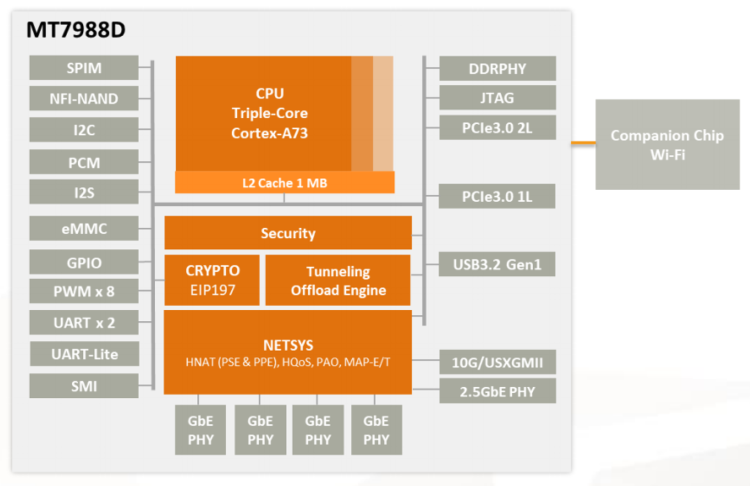 Техника потребительского уровня с поддержкой Wi-Fi 7 появилась еще в 2023 году, но так и осталась либо игрушкой для богатых гиков, либо сырьем для экспериментов (а часто и тем и другим вместе). Что и говорить, даже сам стандарт IEEE 802.11be не ранее, чем этим летом принял свою финальную форму. Сразу снимем груз с совести: в новой «Ультре» (NC-1812) есть Wi-Fi 7, но не тот, о котором вы подумали, — без поддержки полосы пропускания 320 МГц в диапазоне 6 ГГц. Но, кажется, это хороший знак, ведь пока нет решений такого класса, нет и массового спроса. Netcraze же — новое имя устройств Keenetic на российском рынке. Имя броское, запомнить просто. ⇡#Технические характеристики, ценаВ основе Netcraze Ultra лежит платформа Filogic 860 от MediaTek. Это второй по старшинству представитель серии после Filogic 880. SoC маршрутизатора содержит три ядра ARM Cortex-A73 со штатной тактовой частотой 1,8 ГГц и примечательна тем, что в нее интегрированы четыре гигабитных PHY и еще один стандарта 2.5GbE, а значит для реализации соответствующих интерфейсов не требуется дополнительная дискретная логика. Единственный канал USXGMII тут занят PHY-чипом Realtek RTL8261BE (10GbE). Также отметим врожденную поддержку USB 3.2 Gen 1 (т.е. USB 3.0 со скоростью 5 Гбит/с), а вот за порт USB 2.0 отвечает дискретный концентратор. Само собой, на схеме SoC фигурируют блоки, обслуживающие в железе такие задачи, как криптография, инкапсуляция, NAT и QoS. Маршрутизатор имеет 1 Гбайт оперативной памяти типа DDR4 и флешку объемом 256 Мбайт, которая вмещает две копии прошивки — действующую и резервную. Беспроводная часть платформы связана с SoC двумя линиями PCI Express 3.0 и представляет собой трио чипов: управляющий MT7992AV и две baseband-микросхемы — MT7975N для диапазона 2,4 ГГц и MT7977BN для 5 ГГц. В обоих диапазонах Netcraze Ultra имеет формулу MIMO 4×4:4, что при использовании модуляции 4096-QAM и пропускной полосы 40 и 160 МГЦ означает максимальную канальную скорость 1 376 и 5 765 Мбит/с соответственно, а в сумме — 7 141 Мбит/с. Отсюда маркетинговый класс BE7200. Пусть Netcraze Ultra не работает в диапазоне 6 ГГц и, следовательно, лишен полосы пропускания 320 МГц, здесь реализовано другое новшество Wi-Fi 7 — возможность одновременной передачи данных через два радиоканала между точкой доступа и клиентом (MLO). Разумеется, мы проверим в деле, насколько полезно комбинировать большую пропускную способность радио 5 ГГц с узким и типично зашумленным каналом 2,4 ГГц. Но BE7200 — это в любом случае про целую сеть, а не отдельного клиента. Четыре пространственных потока одновременно, с MLO или нет, может освоить только другой маршрутизатор в составе mesh-сети, если владелец решит использовать беспроводную опорную сеть (бэкхол), а не медное подключение 10GbE.