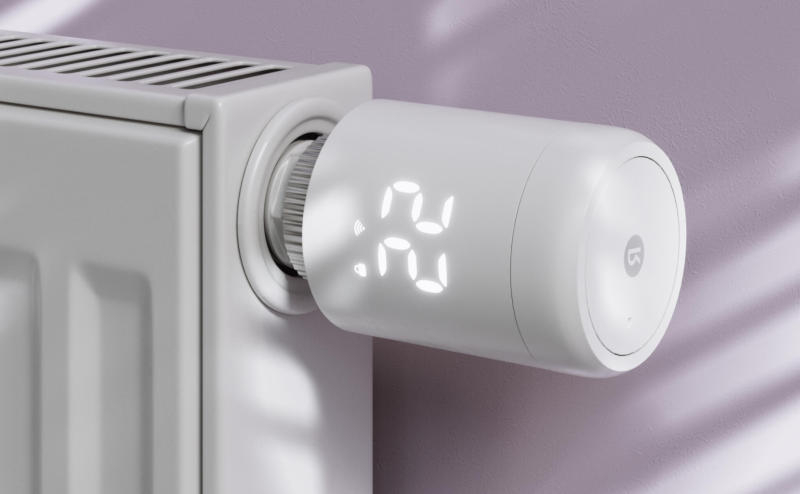 Умный терморегулятор для радиатора подключается к системе умного дома по протоколу Zigbee и управляется либо голосовыми командами, либо через приложение. Он отличается компактными размерами и тихой работой — не громче 35 дБ. Устройство поддерживает функцию «умный климат»; в комплекте с терморегулятором идут семь переходников, благодаря которым его можно установить на большинство радиаторов. Батареек хватит на два года работы.