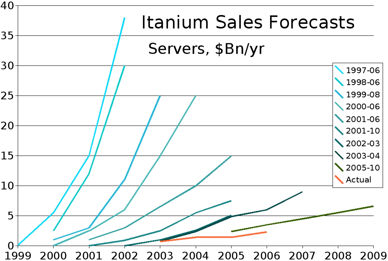 Весьма впечатляющее сравнение маркетинговых посулов относительно того, как будут расти продажи серверов с процессорами семейства Itanium (различные оттенки сине-зелёного — в зависимости от года, когда очередной прогноз публиковался), с фактическими данными об их реализации (оранжевая линия) (источник: ExtremeTech) К середине 2010-х (после того, как компания MIPS, отделившись от Silicon Graphics, пошла по рукам, а позже и вовсе отказалась от развития одноимённой архитектуры в пользу RISC-V) едва ли не главную роль в оскудевшей разработчиками экосистеме RISC стала играть компания ARM, как раз примерно в то время сменившая типографику собственного наименования на Arm, чтобы оно не смешивалось с названием одноимённой процессорной архитектуры. Секрет успеха этих разработчиков, которые исходно не могли похвастать сопоставимыми с IBM, HP или иными тяжеловесами возможностями, — продуманный и обоснованный выбор стратегии развития. Руководство Arm, проведя классический для попавшего в затруднительное положение бизнес-проекта анализ SWOT (Strengths, Weaknesses, Opportunities, Threats — «достоинства, уязвимости, возможности, угрозы») приняла решение ориентироваться на те ниши, которые её более крупным и состоятельным соперникам были попросту не интересны: на встраиваемые и портативные устройства. Ведь, хотя x86-процессоры действительно хорошо справлялись с не оптимизированными под себя задачами, делали они это за счёт проведения избыточных вычислений — расходуя много энергии и (вспоминаем про особенности архитектуры CISC) требуя чрезмерно большого числа транзисторов для реализации своих разнообразных вычислительных контуров. Мобильная же и промышленная электроника нуждается как раз в оптимизации на уровне «железа» и командной архитектуры, ISA, — в том, что и было изначальным преимуществом архитектур с наборами сокращённых команд. Кроме того, компания решила сама не заниматься проектированием конкретных процессоров, — создавая лишь общий инженерный дизайн и лицензируя партнёрам свои разработки. Взамен же она требовала довольно скромных отчислений с каждого ARM-ядра в составе процессора в каждом проданном конечному заказчику партнёрском ИТ-устройстве. ⇡#Теперь и для ИИМетодичное, последовательное движение разработчиков из Arm по объективно выбранному курсу принесло свои плоды уже совсем скоро — когда в начале 2010-х занялась заря эры смартфонов, а затем и «умных» (в тогдашних терминах, не имевших никакого отношения к ИИ) устройств, способных выполнять определённый — пусть сильно ограниченный — круг задач без участия человека. Оконный датчик, выдающий команду автоматизированной рольшторе опуститься, как только окно на южной стороне дома заглядывает летнее солнце; система машинного зрения, при помощи которой робот-пылесос составляет карту своих перемещений по квартире; сенсор протечки, что перерывает воду в аварийной ситуации — всё это примеры встраиваемых систем, контроллерам которых попросту не требуются обеспечиваемые архитектурой CISC супервозможности. А уж про мобильные телефоны и говорить нечего: ёмкость аккумулятора никогда не бывает избыточной, и потому чем энергоэффективнее функционирует система-на-кристалле в составе смартфона, тем продолжительнее время его автономной работы — и тем выше удовлетворённость его владельца от взаимодействия с таким экономичным а