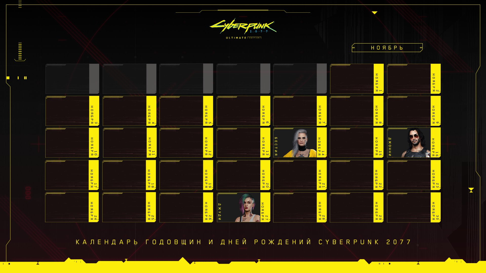 Началось всё с того, что недавно официальный микроблог Cyberpunk 2077 опубликовал календарь годовщин и дней рождений на декабрь. Публикация была охарактеризована как «приоритетная передача».