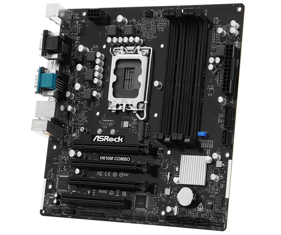 Компания ASRock представила материнскую плату H610M COMBO формата Micro-ATX, оснащённую процессорным разъёмом Intel LGA 1700 (для чипов Core 12-го, 13-го и 14-го поколений). Ключевая особенность платы — поддержка двух стандартов оперативной памяти DDR5 и DDR4.