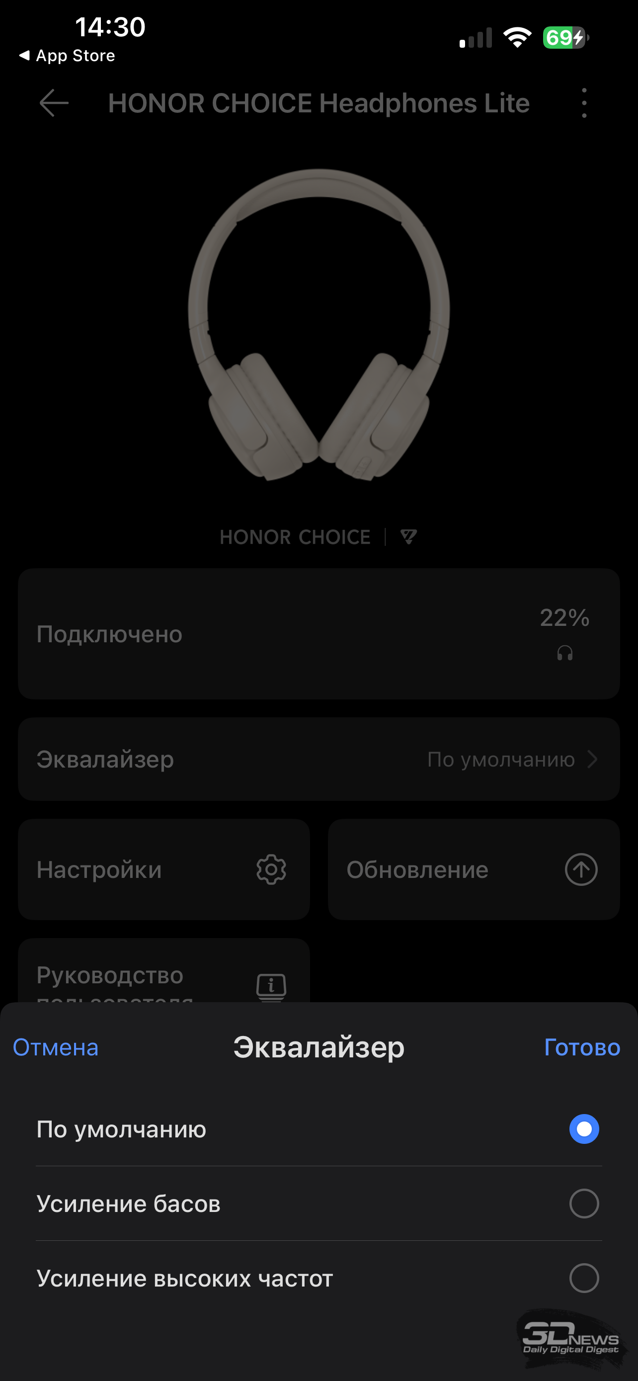 Какие-то интересные названия HONOR для устройств, выходящих в рамках программы CHOICE, не выбирает, просто фиксируя очевидное — возможно, с какими-то суффиксами, намекающими на класс устройства. Год назад были выпущены первые полноразмерные (накладные) наушники в рамках серии — HONOR CHOICE Headphones и Headphones Pro, с шумоподавлением и характерным для подобных моделей уровнем удобства. Теперь же мы встречаем младшую модель в той же серии — HONOR CHOICE Headphones Lite. Она лишена шумоподавления, более компактна (чашечки не закрывают уши полностью) но при этом может похвастать аномальной способностью держать заряд — производитель обещает до 82 часов без необходимости искать розетку. И это — при цене в 1 990 рублей. Давайте присмотримся и, конечно же, прислушаемся к этим удивительным наушникам. ⇡#Дизайн и конструкцияHONOR CHOICE Headphones Lite оформлены просто, без каких-то специфических «дизайнерских» элементов, но при этом смотрятся здорово. Это очень «чистый» дизайн без чего-либо лишнего — даже без логотипа производителя. Что логично — свой на устройства этой серии HONOR не ставит (производство-то не собственное), а имя настоящего производителя (компании Betrue Technology) не то, чтобы скрывает, но и не подсвечивает. Наушники представлены в четырех цветовых исполнениях: бежевом, сером, черном и зеленом. У нас оказались бежевые (почти белые, по факту) HONOR CHOICE Headphones Lite – и это, кажется, наиболее выигрышный вариант, он очень идет этой модели. Из примечательных элементов отмечаем разметку «право-лево» при помощи крупных обозначений на ткани внутри чашечек (очень эргономичное решение, которое вдобавок свежо смотрится) и блок с интерфейсами и кнопками на правой чашечке. На нем мы видим микрофон, порт USB Type-C, индикатор состояния и блок управления с двумя клавишами регулировки громкости и многофункциональной центральной кнопкой. Каких-то датчиков, реагирующих на положение наушников или сенсорных панелей на чашечках нет — все-таки бюджетный статус дает о себе знать. Когда вы снимаете с головы HONOR CHOICE Headphones Lite, звук из них продолжает идти, воспроизведение не ставится на паузу, надо делать это вручную — либо на устройстве, служащем источником сигнала, либо при помощи той самой механической клавиши. Материалы также ожидаемо простенькие — матовый, не самый приятный на ощупь пластик и искусственная кожа, из которой сделаны абушюры и оголовье. По качеству исполнения у меня вопросов не возникло — о какой-то премиальности разговаривать не стоит, но ничего не скрипит, наушники не хрупкие. HONOR CHOICE Headphones Lite обладают складной конструкцией, реализованной традиционно: чашечки «ломаются» в районе стыка с дугой. Есть регулировка по высоте — и запас очень серьезный, наушники подойдут человеку с любым размером головы. Что касается соответствия чашечек и ушных раковин — то для меня они показались чуть маловаты. Да, это именно накладные во всех смыслах этого термина наушники — то, что уши будут в них «тонуть», не подразумевается; но на мои (довольно крупные) ушные раковины они все-таки заметно давили, отчего более пары часов подряд носить HONOR CHOICE Headphones Lite мне было затруднительно. Допускаю, что обладателям (скорее, обладательницам) более маленьких ушей будет комфортнее. Шумоизоляция средняя — в транспорте придется уже задирать громкость до максимума. При этом наушники весьма легкие и компактные. Весят они 152