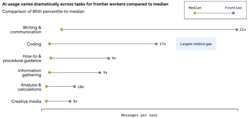 Лайткап и Чаттерджи подчеркнули «растущий разрыв во внедрении ИИ», при этом некоторые «передовые» сотрудники чаще используют больше инструментов, чем «отстающие». «Есть компании, которые до сих пор воспринимают эти системы как программное обеспечение, что-то, что я могу купить, предоставить своим командам, и на этом всё заканчивается, — сказал Лайткап. — А есть компании, которые действительно начинают его использовать, почти как операционную систему. По сути, это реплатформинг многих операций компании».