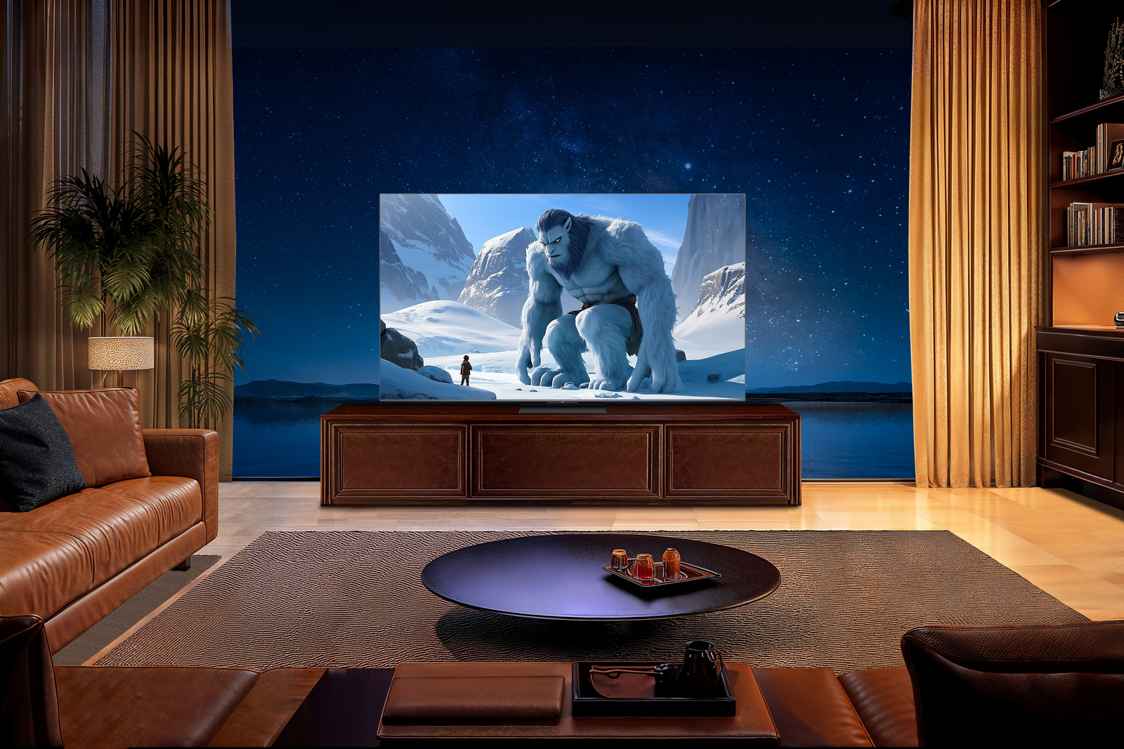 В модели используется матрица CrystGlow WHVA с разрешением 4K UHD (3840 × 2160 пикселей). Это новое поколение HVA-панелей с собственным контрастом 7000:1, почти незаметной рамкой и низким уровнем отражений — всего 0,5 %, что особенно важно для больших телевизоров, установленных в комнатах с несколькими источниками света.