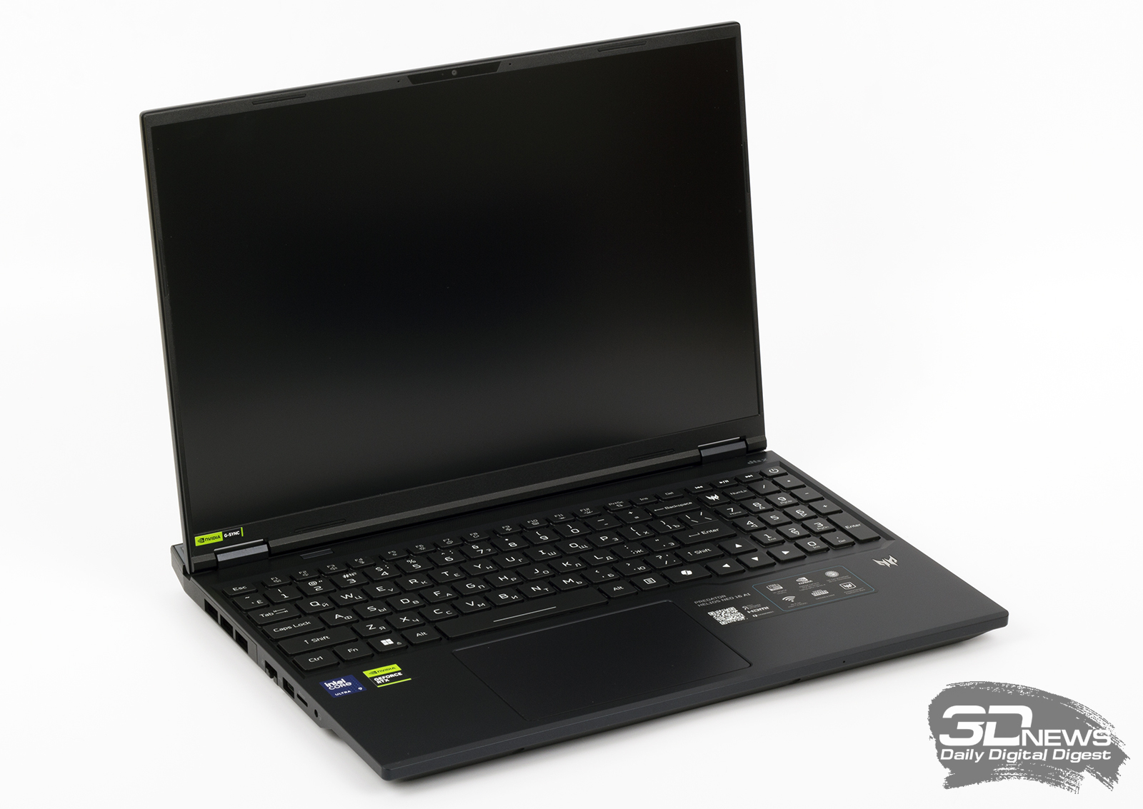 Я бы не сказал, что отказ от OLED- в пользу IPS-матрицы всерьез в чем-то урезает пользователя. Да, разница заметна — особенно если мы говорим в первую очередь об использовании компьютера для развлечений. Но в любом случае в модификациях Predator Helios Neo 16 AI используются качественные 16-дюймовые панели. В тестовом образце установлена IPS-матрица TL160ADMP26. Ее яркость достигает 500 нит, а частота вертикальной развертки составляет 240 Гц. Заявлена поддержка технологии G-SYNC.
