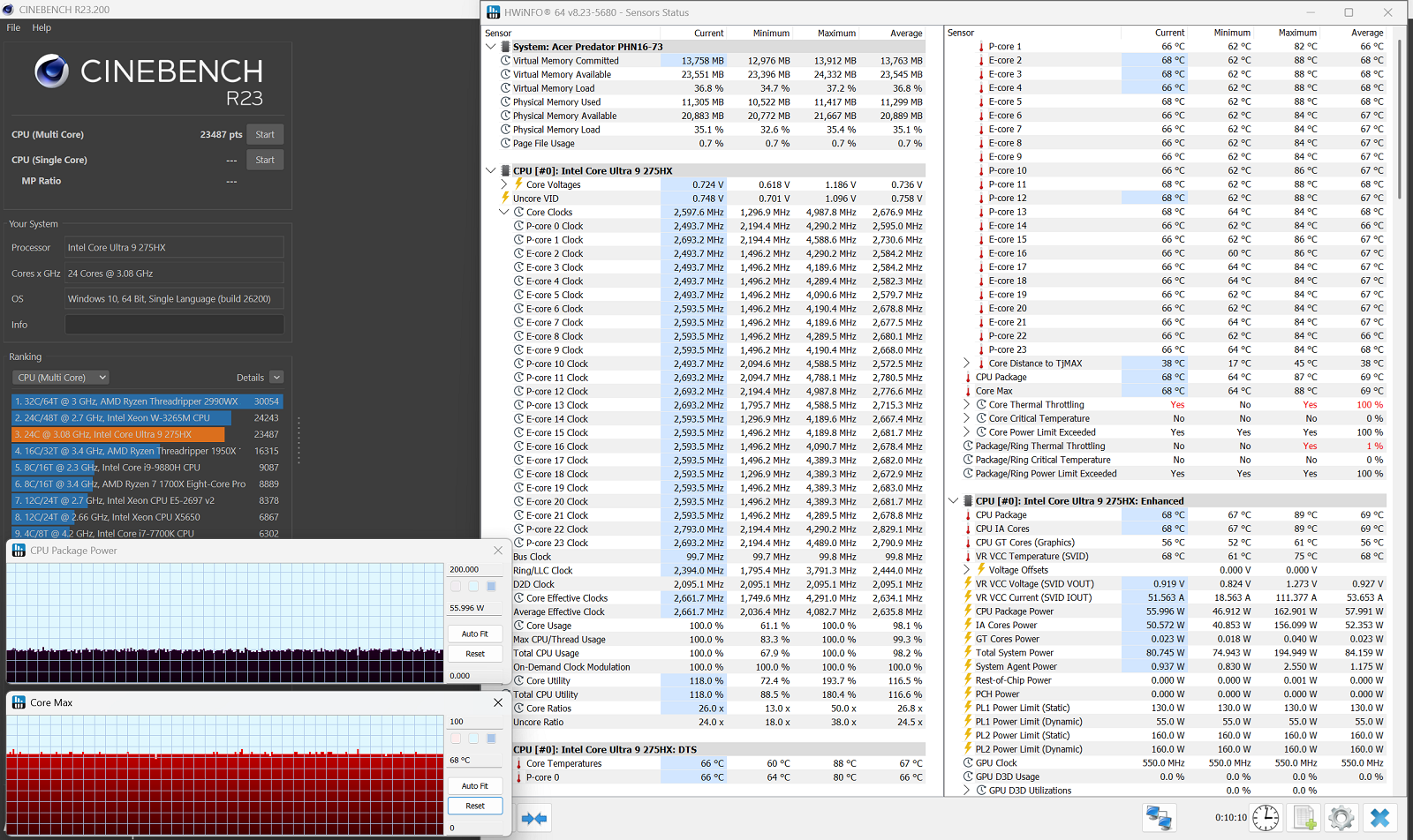 Сводные данные по работе и настройке системы в процессорозависимом ПО (на примере Cinebench R23)