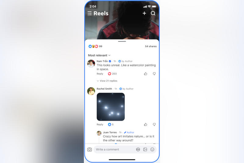 Удобнее стало оставлять комментарии в ленте, группах и разделе Reels; значки теперь выглядят более заметными, появились новые средства для закрепления комментариев — так пользователям удобнее отслеживать обсуждения, а администраторам — легче их контролировать. Пользователи получили возможность анонимно отмечать не относящиеся к предмету обсуждения комментарии. В ленте можно оставлять отзывы о том, почему не понравился тот или иной пост или ролик, что поможет эффективнее её персонализировать.