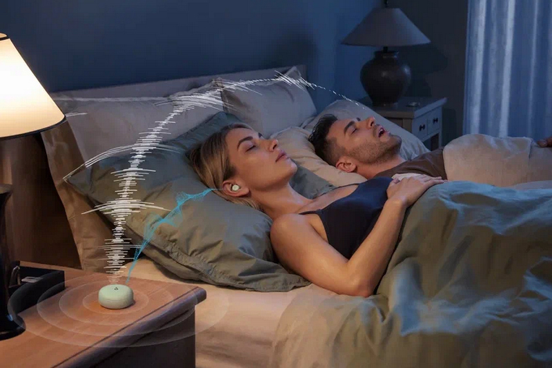 Одной из ключевых особенностей Soundcore Sleep A30 стала трёхступенчатая система маскировки храпа. В отличие от большинства подобных решений здесь используются не только сами наушники, но и зарядный кейс. Он оснащён микрофонами, которые отслеживают уровень и частотный диапазон звуков храпа в реальном времени. На основе этих данных система автоматически запускает маскирующий аудиосигнал — низкочастотный фон, белый шум или природные звуки, — подбирая параметры динамически на протяжении всей ночи.