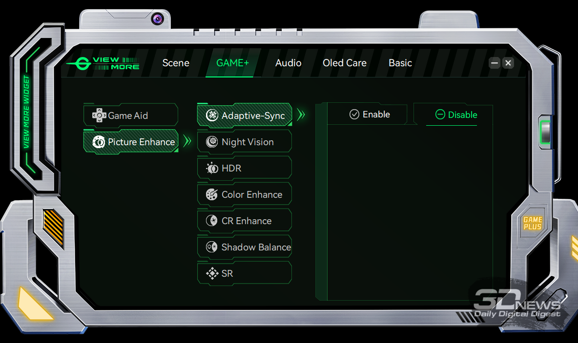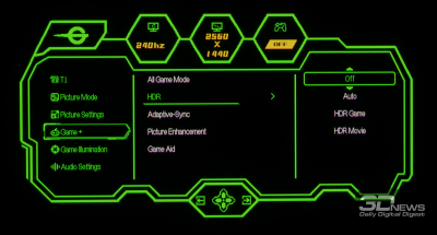 При этом возможно визуально различимое мерцание изображения в играх (особенно тёмных участков) при использовании любой из систем, но такова особенность работы всех OLED-дисплеев. Бороться с этим в случае с Titan Army – нечем – дополнительная функция ограничения диапазона VRR в мониторе не предложена.