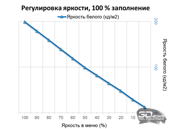 Относительно высокие результаты сохраняются во всем диапазоне регулировки яркости, чего не скажешь о W-OLED, которые резко снижают качество и динамический диапазон даже после уменьшения яркости на 20-30 % от возможного максимума (особенно первые игровые модели на их базе).